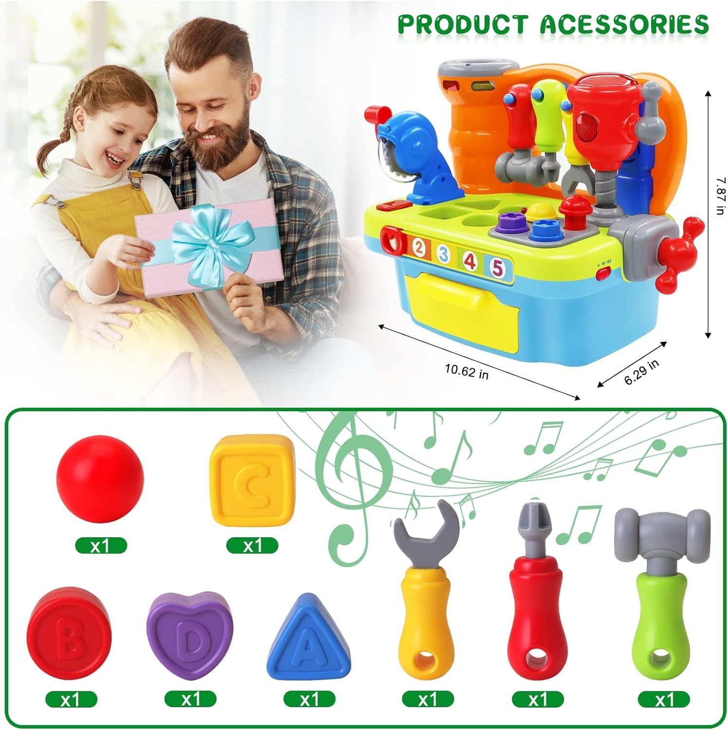Best Gifts for Children: Cute and shiny workbench toys for your kids or grandkids, toddler toys for little boys and girls, great as birthday, Easter, Christmas, Thanksgiving gifts, early educational toys for 1st birthday gifts boy. Best construction toys for 1 2 3 year olds boys and girls.