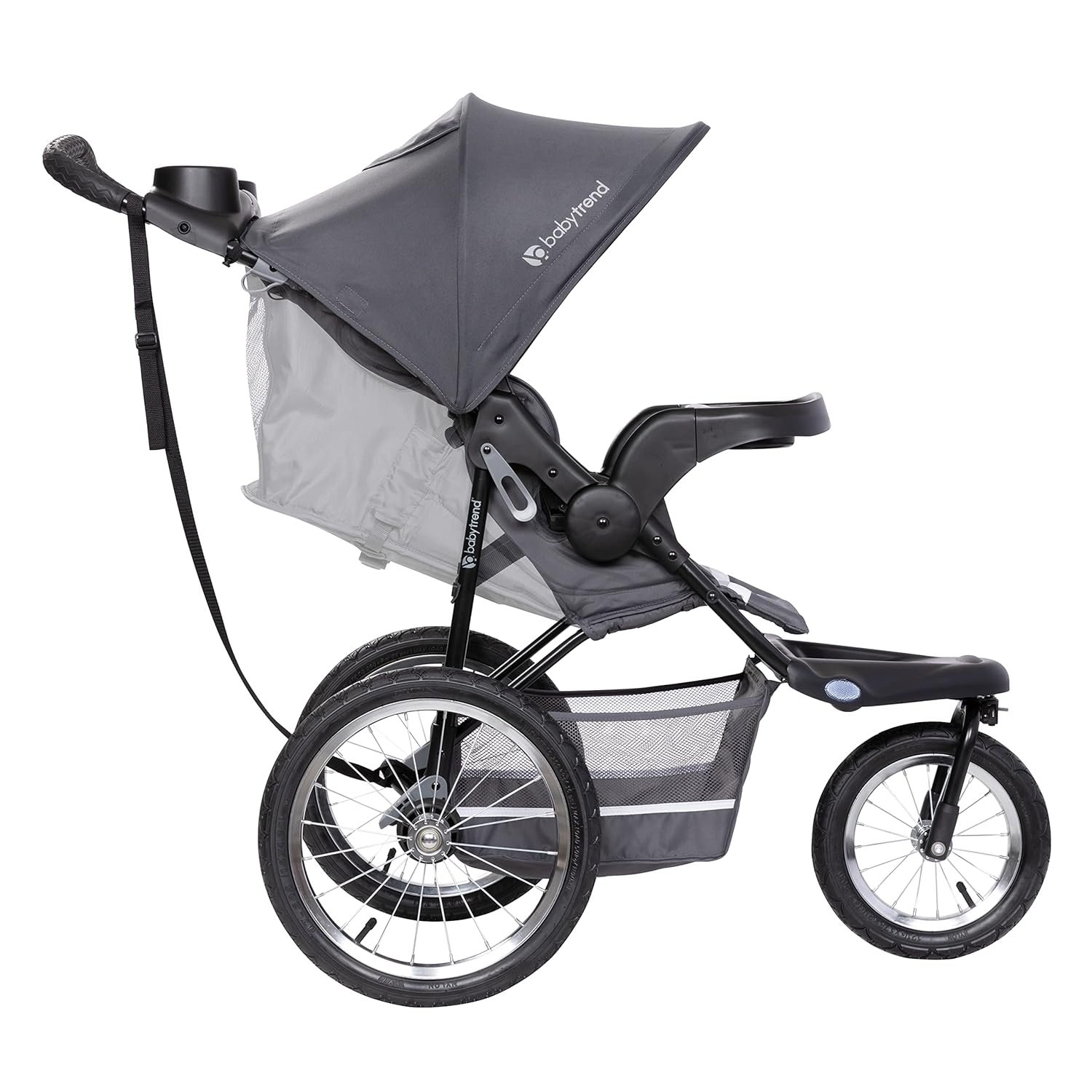 The Baby Trend Expedition Jogger is designed with style and security for you and your child. It has a parent tray with 2 cup holders and covered storage compartment and an extra-wide ergonomically shaped rubber grip for comfortable handling. The child’s tray has 2 cup holders to keep beverages and snacks handy and also accept Baby Trend EZ-Lift infant car seats to make into a travel system. The jogger also includes a 5-point harness and a rotating canopy with visor that can be adjusted to shield your child from the elements. It has a convenient storage basket under the seat, offering ample space to carry feeding bottles or other baby essentials. The stroller easily folds into a compact unit for easy storage. Its front wheel swivels for easy maneuvering. The wheel can also be locked to offer in-line performance.