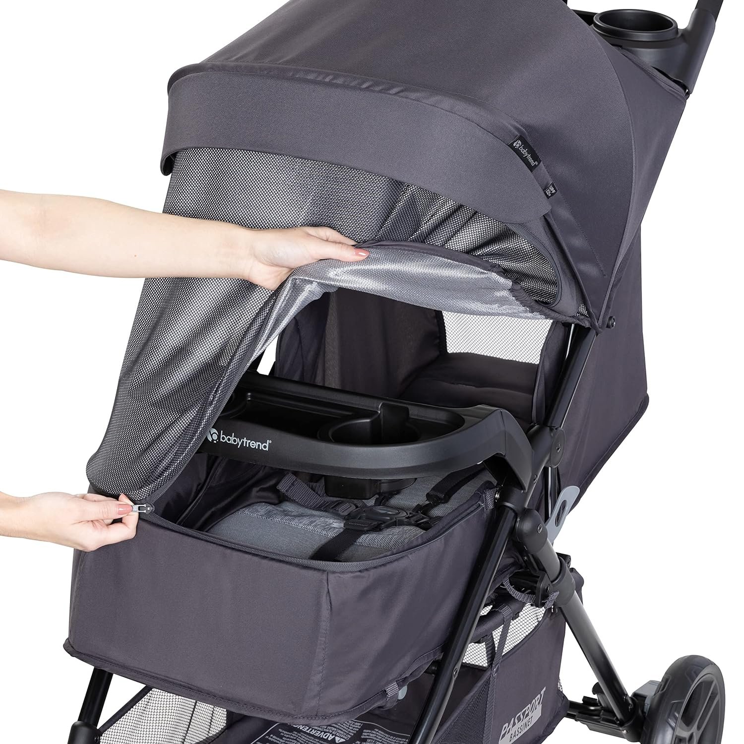 Whether it’s cozy or time for a stroll, Baby Trend’s got you covered! The Passport Carriage Stroller offers a carriage mode option that allows your baby to have the comfort of an in-home carriage wherever you go. With added snooze protection, a full zip mesh covering will shield your baby from outside factors to allow them a peaceful sleep even when out and about. Your little one will be as comfortable as possible in our Comfort Cabin, with a UPF 50+ sun protection canopy, a child’s tray, and plush fabrics. Included parent solutions with a parent tray equipped with two cupholders and a center compartment for easy accessibility to your essentials. This stroller also includes a large storage basket with front and rear access for all of your travel necessities. Quick and easy in-seat fold allows for easy travel and storage when not in use.