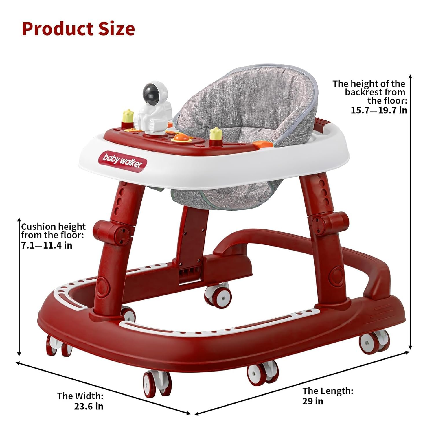 🌺【Compact Scientific Design-This infant walker is designed for 6-24 months old children, pyramid Li mechanical structure, increase the chassis, solid anti-side-turning; 95°backrest design, to protect the baby’s spine; the front of the car to reserve a safe distance, to prevent the baby crowded hands; cushion diaper design principle, high-density linen skin-friendly material, comfortable and breathable.