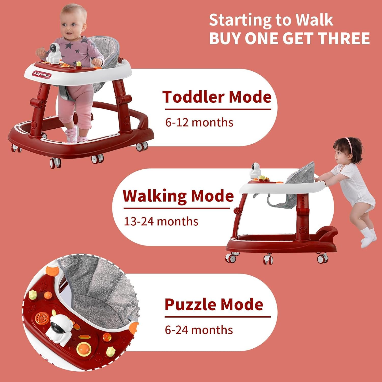 🌺【3-in-1 Multi-functional Baby Walker -The baby walker with wheels adopts a 3-in-1 design, including baby walker mode, walker mode, and puzzle entertainment mode, which meets the needs of babies of both genders aged 6-24 months, and makes babies bravely take the first step to explore the world!