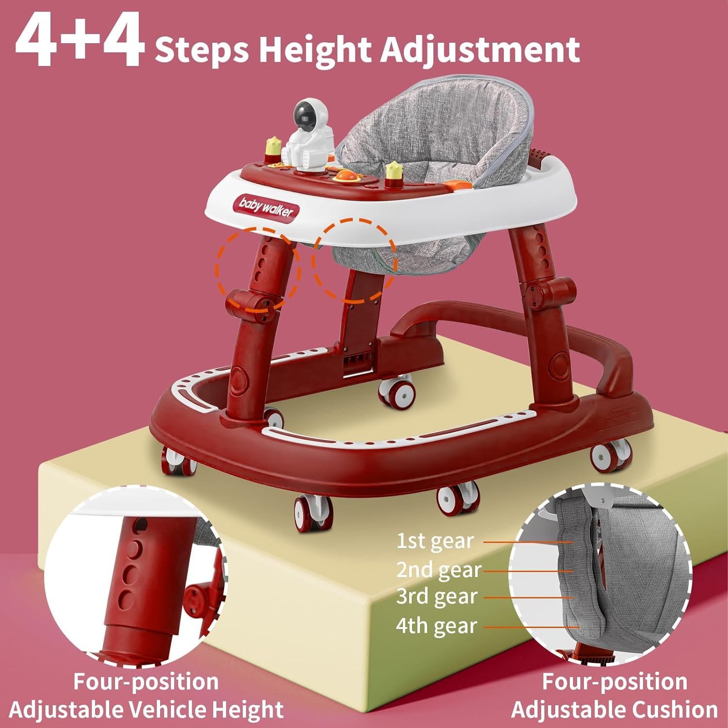 🌺【8-gear Height Adjustment-This baby walkers can be adjusted in 8 heights, the body can be adjusted in 4 levels, and the seat cushion can be adjusted in 4 levels, which matches the baby’s walking stage, adjusts the height of the walker in time, and prevents O-legs effectively and scientifically.