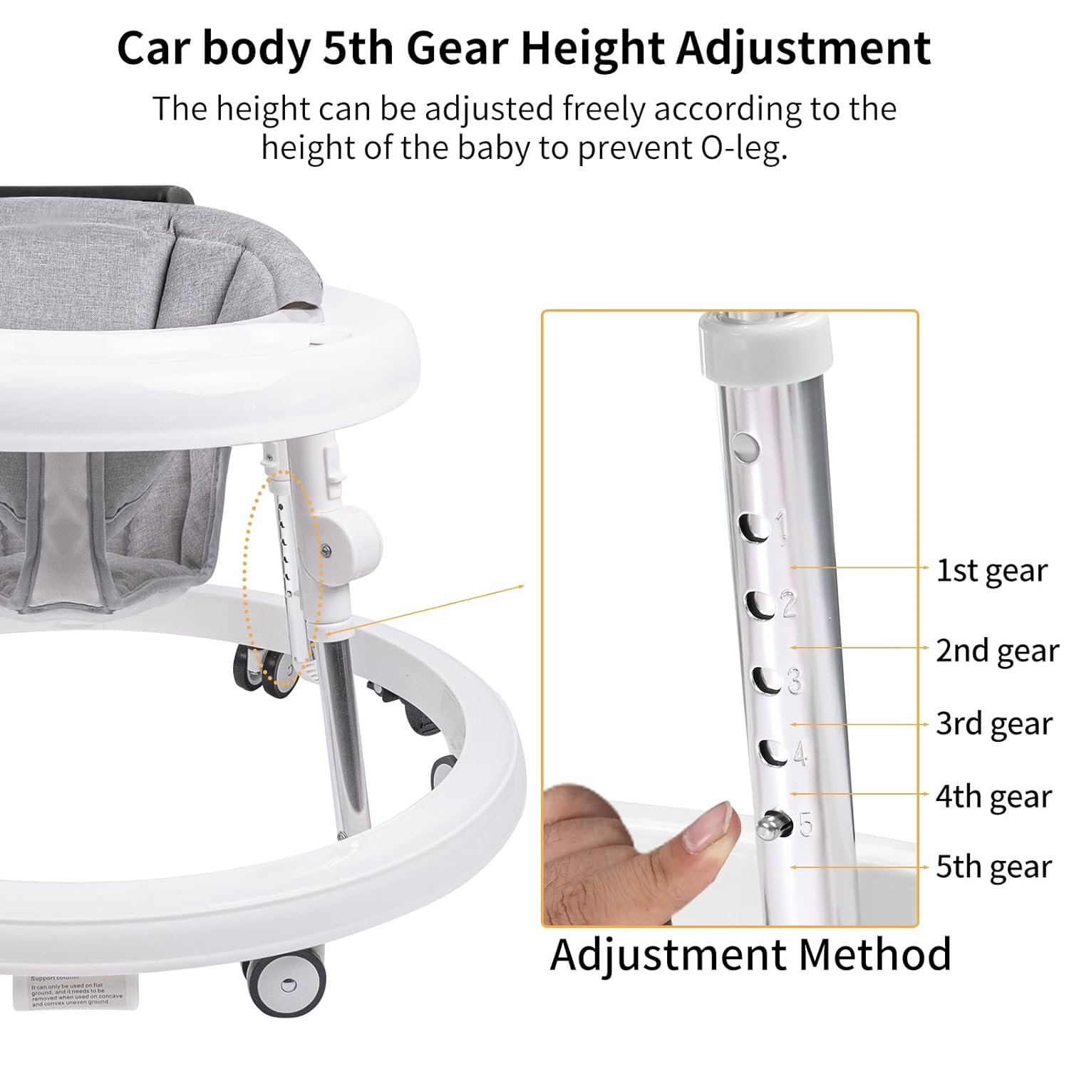 🏆【9-Gear Height Adjustment】The toddler walkers use 5-gear body height adjustment+4-gear seat pocket height adjustment, which can meet the needs of children of different ages and heights, and effectively prevent O-ring.
