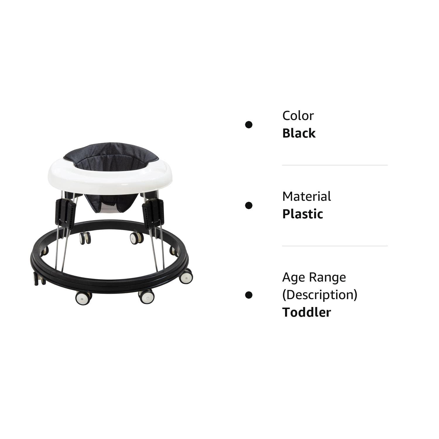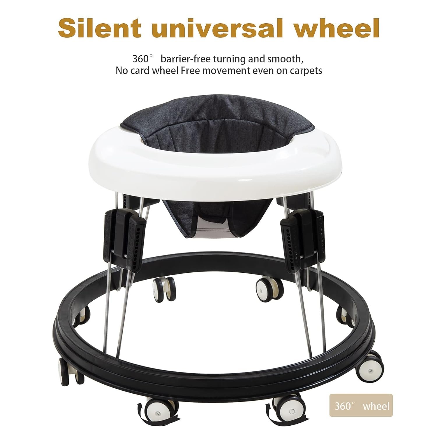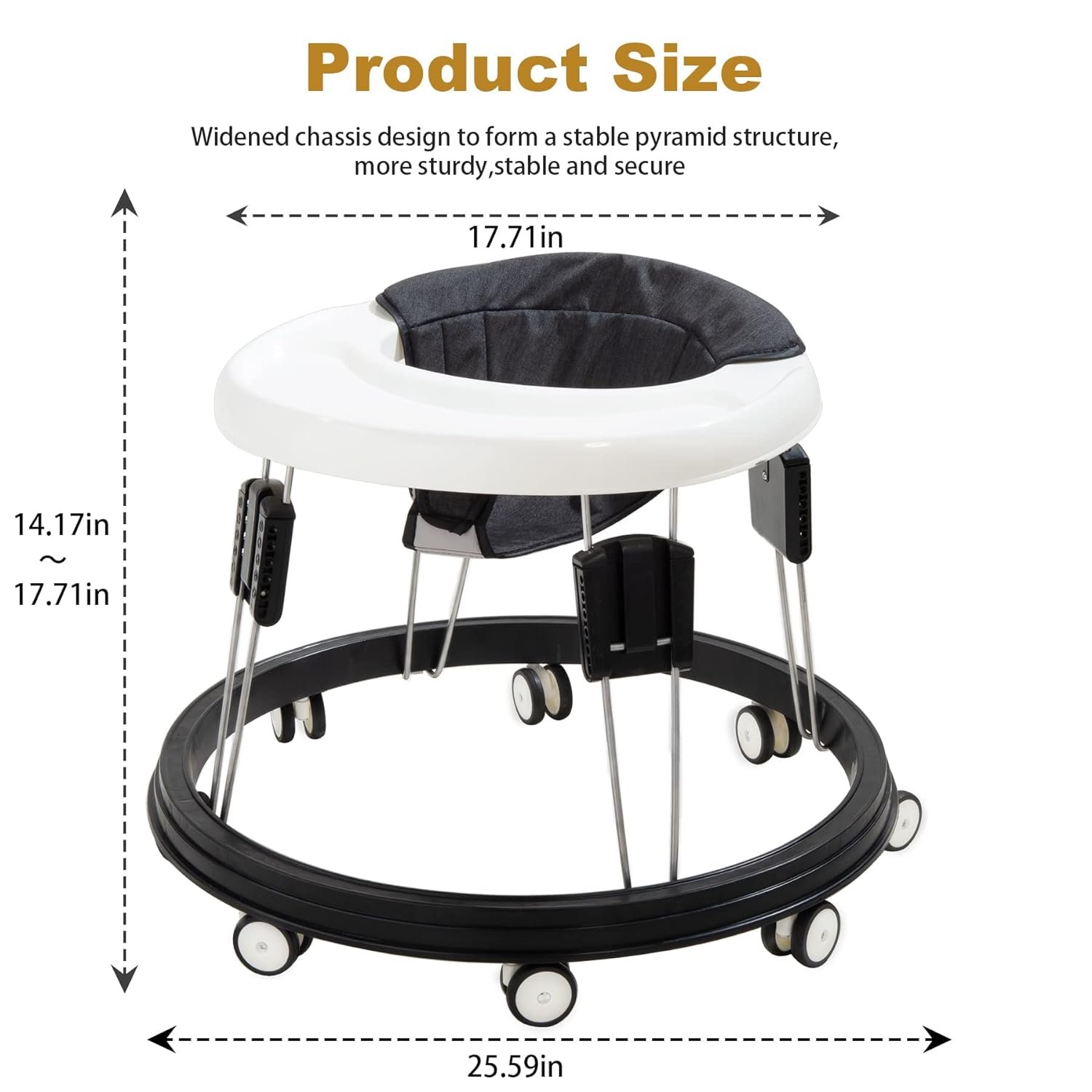 Baby Walker,Foldable Multi-Function Anti-Rollover Toddler Walker,Suitable for All Terrains for Babies Boys and Girls 6-18Months 9 Heights Adjustable(Black)