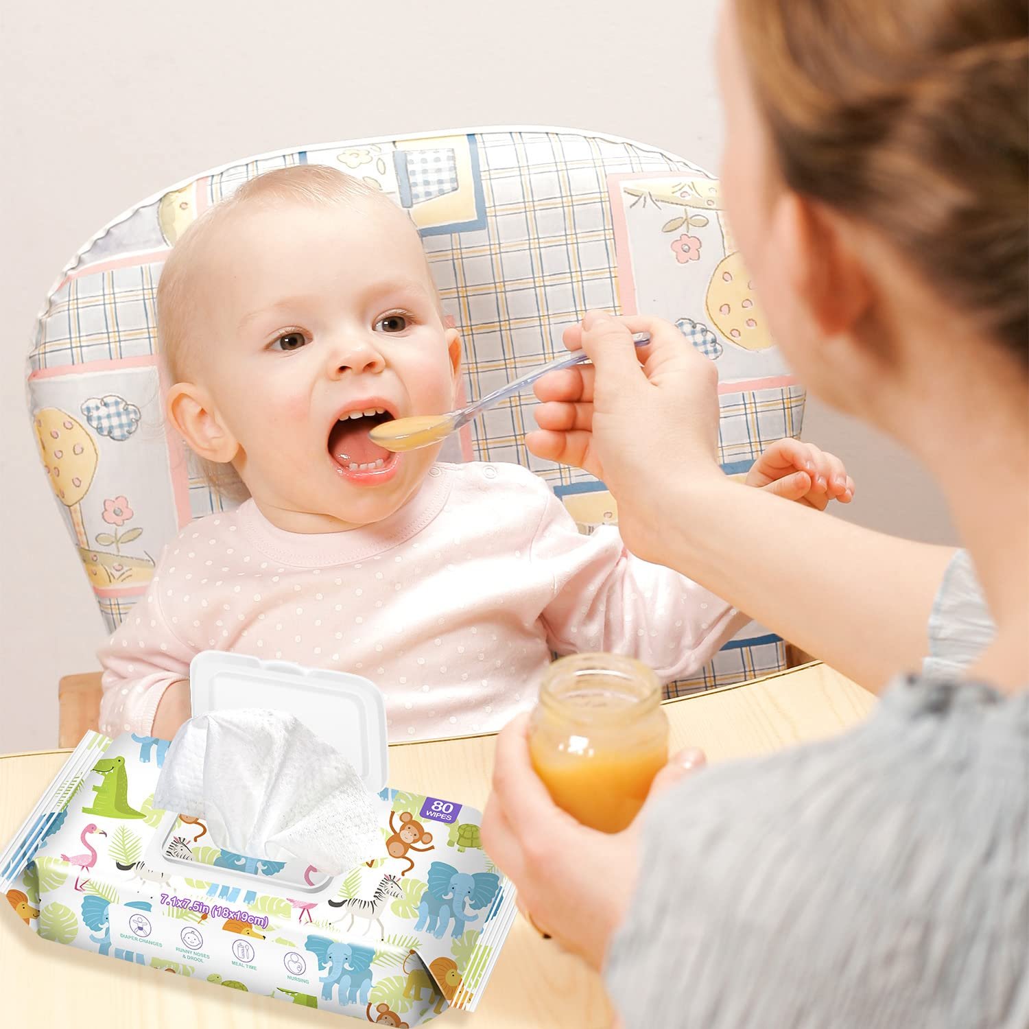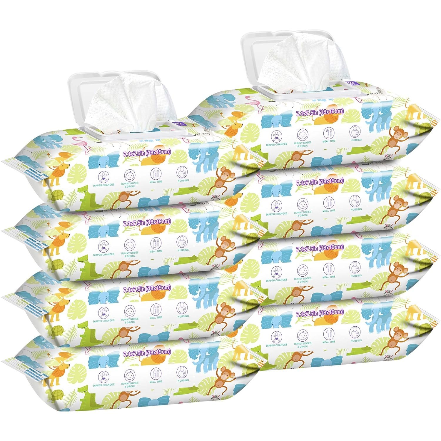 [Specification of baby wipes]- 7.1 * 7.5 inch (18*19 cm). Contains 8 flip-top packs of 80 unscented baby wipes (640 wipes total)