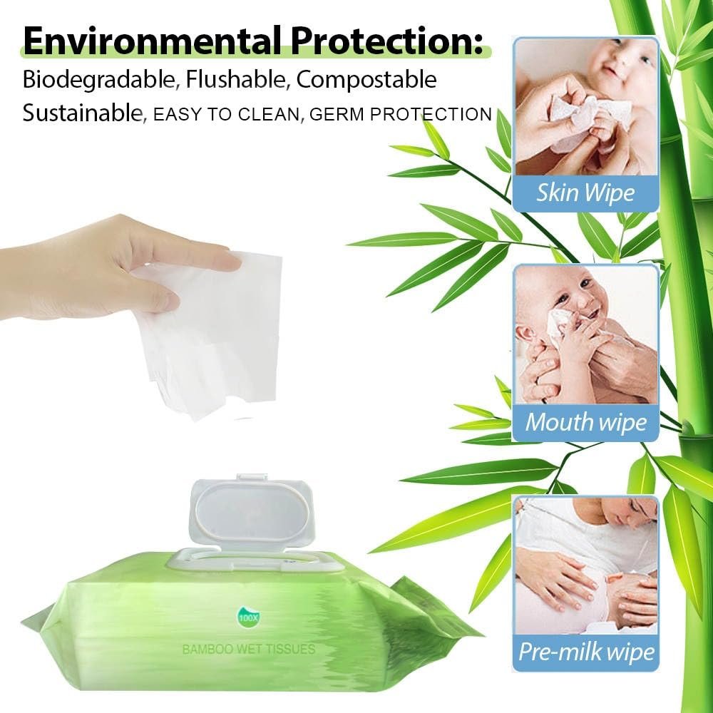Those Wet Wipes are made of 100% biodegradable natural bamboo fabric, 15*20cm per sheet, 100 sheets per bag.(4×100=400) 100% biodegradable, eco-friendly, Natural No chemical. These Baby wet wipes are perfect for cleaning baby’s sensitive hands, face, and eye areas, great for mom too. Can use it at home or while you are travel. Wipes are ideal for adults and pets, too. Reach for them to clean small messes on their skin and clothes. keep these in your gym bag or car to clean on, and use them to wipe your dog’s paws, after a walk outdoors.