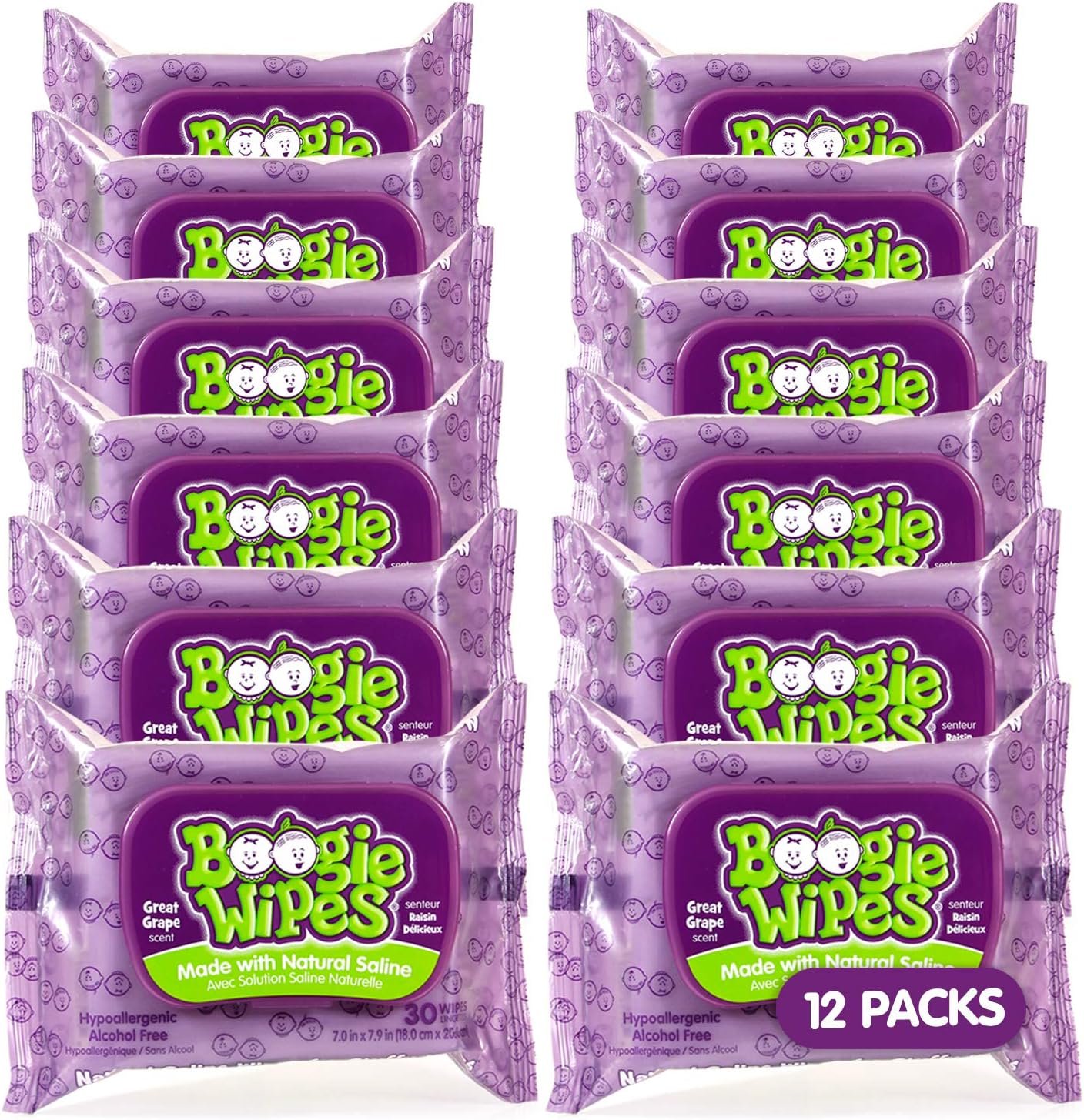 GENTLE SALINE WIPES: Boogie Wipes saline nose wipes are wet wipes made with natural saline, which is gentle on skin, helps clean and dissolve snot and boogers, and wipes away dirt and germs They’re gentle enough to be used on noses, faces, fingers and toes whenever cleaning is necessary
