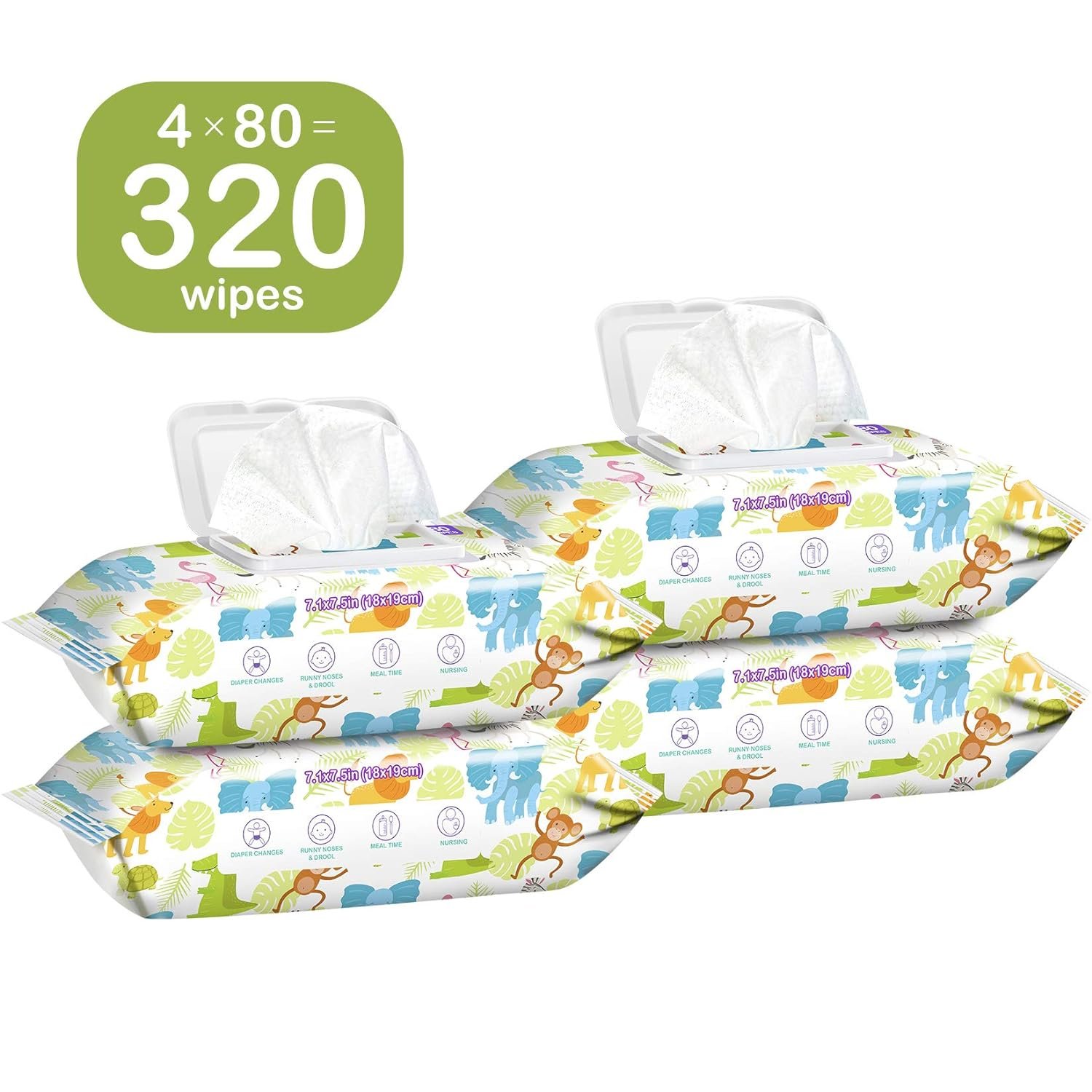 Package—4 flip-top packs of 80 unscented wipes, 7.1*7.5 inch