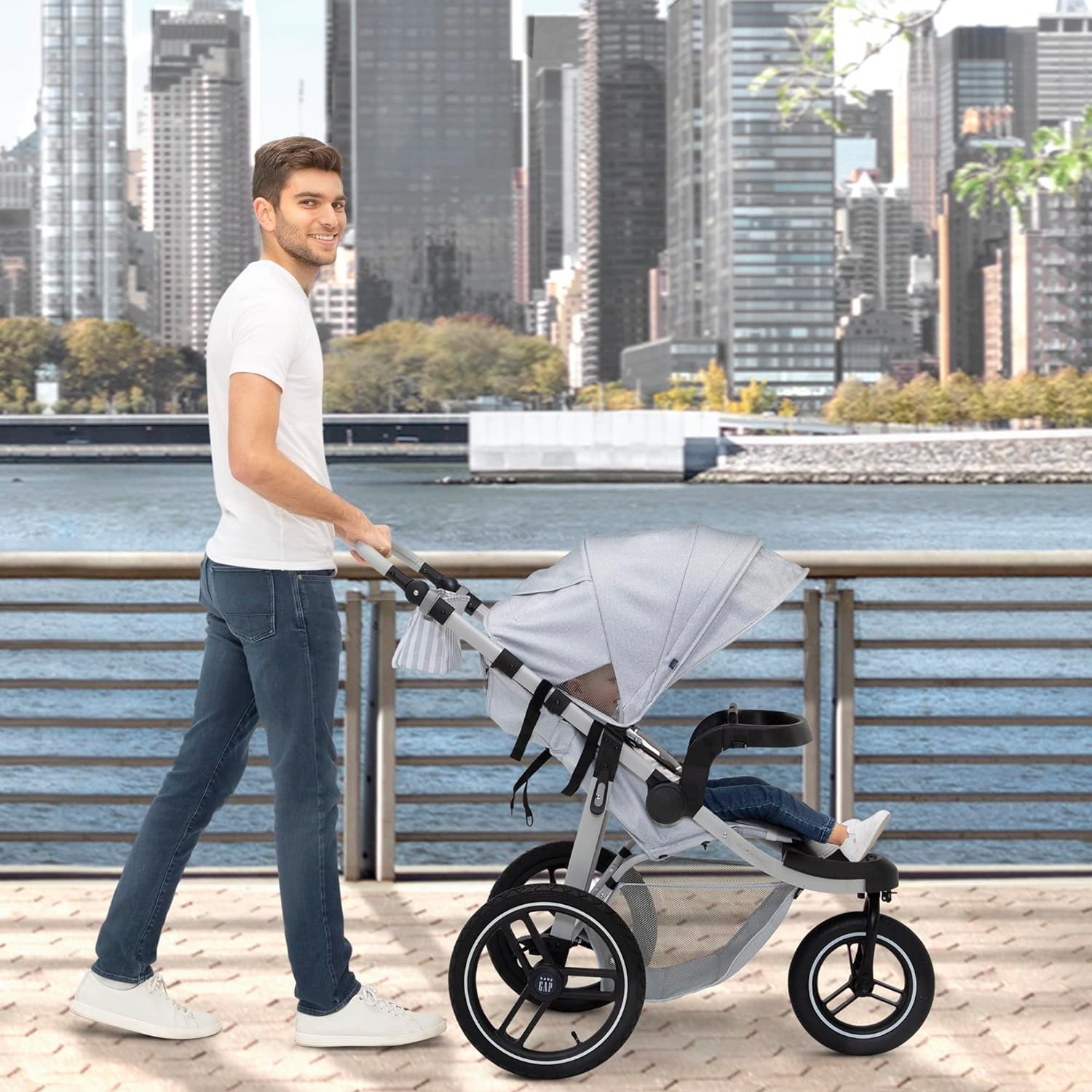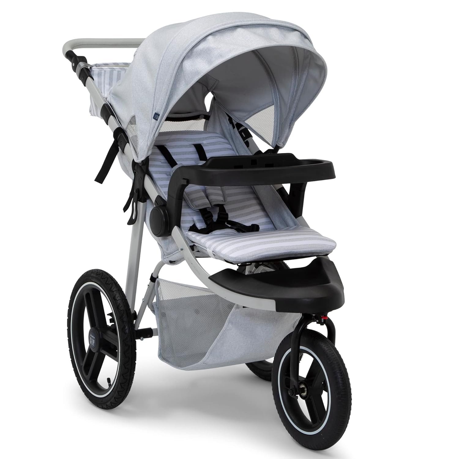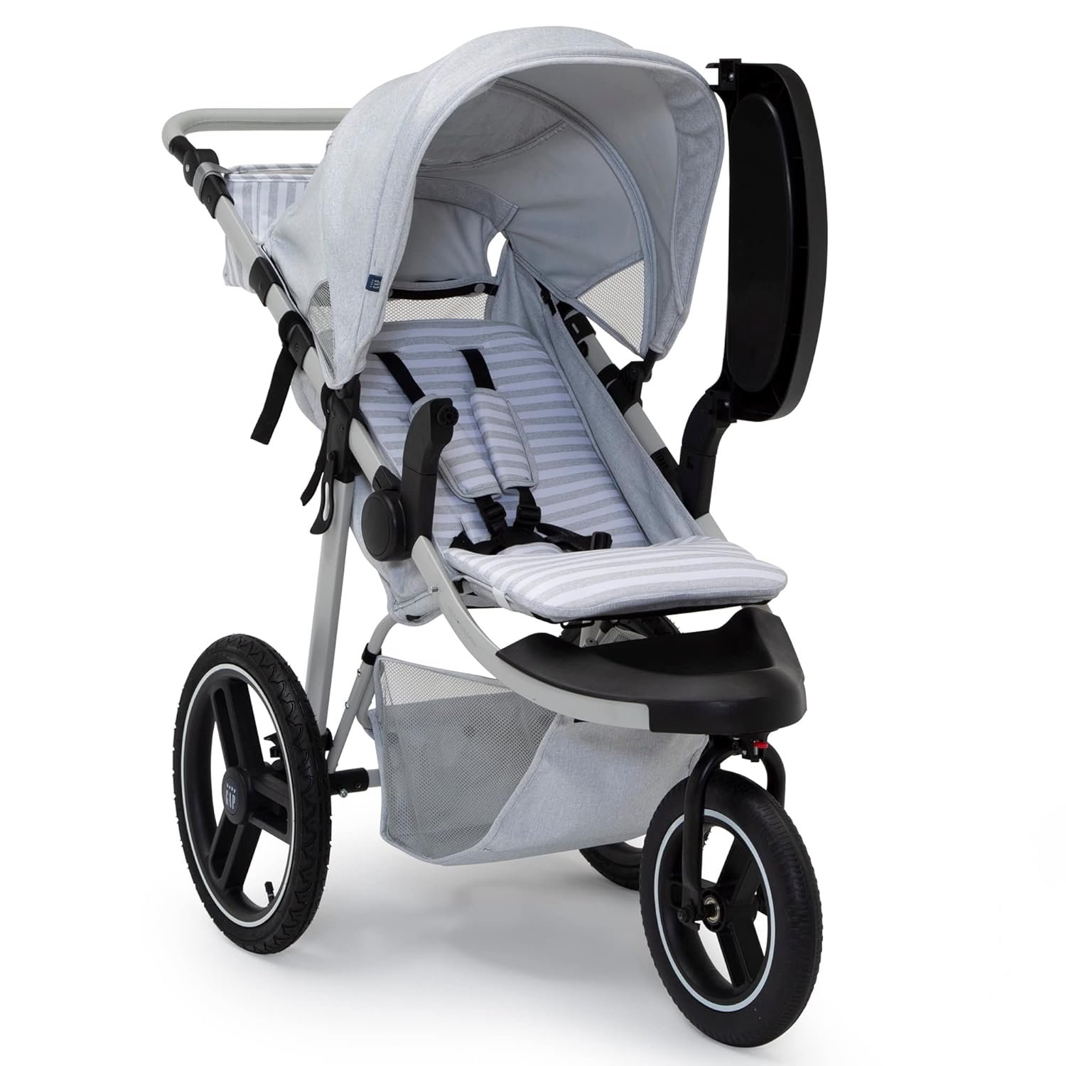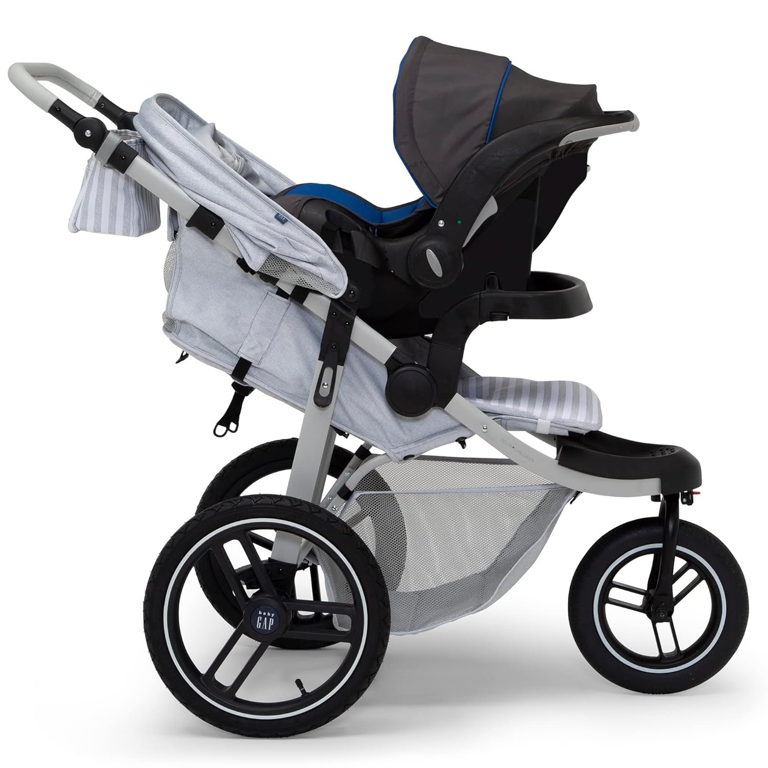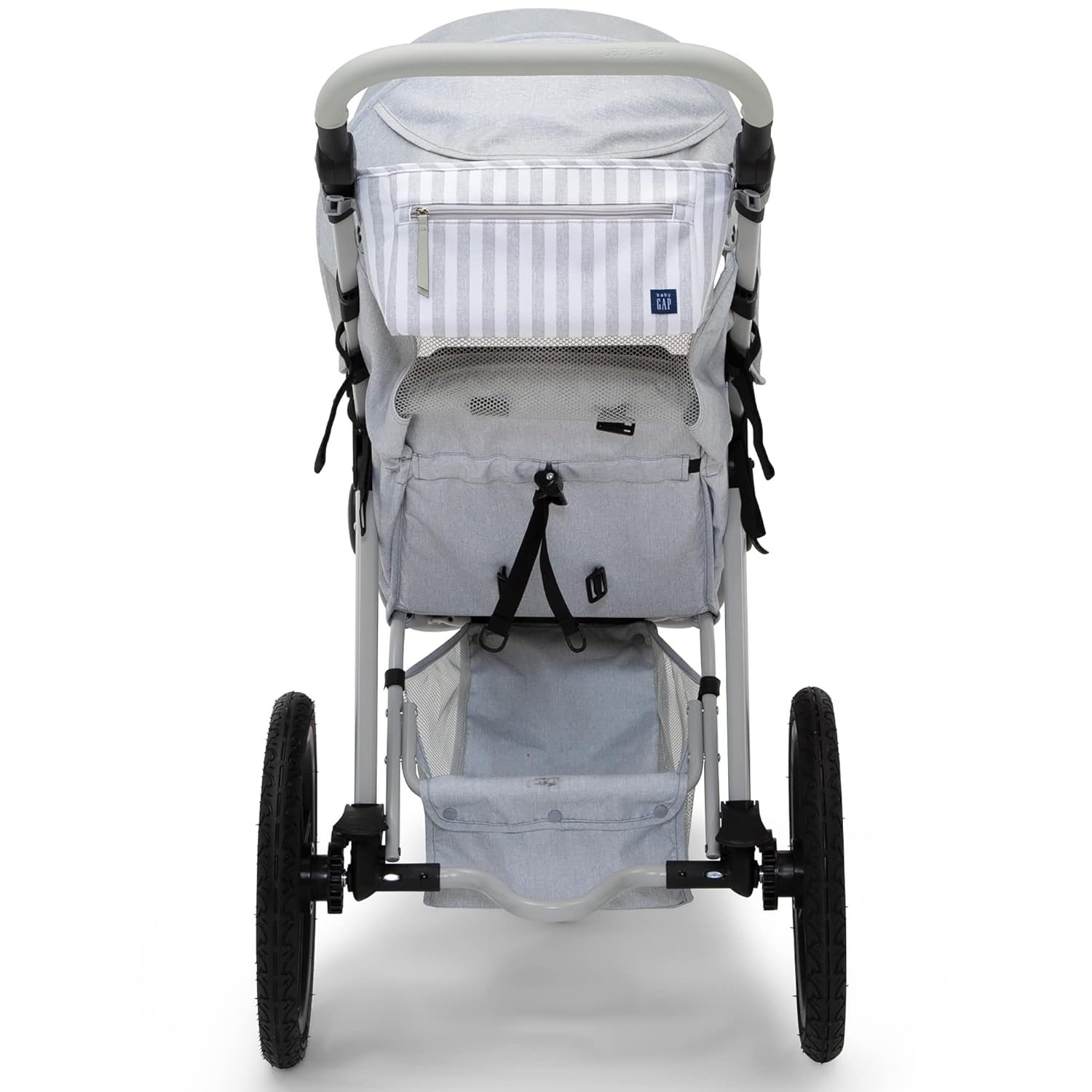 babyGap Trek Jogging Stroller – Lightweight Jogging Stoller with Extendable Canopy & Reclining Seat – Includes Car Seat Adapter – Made with Sustainable Materials, Grey Stripes