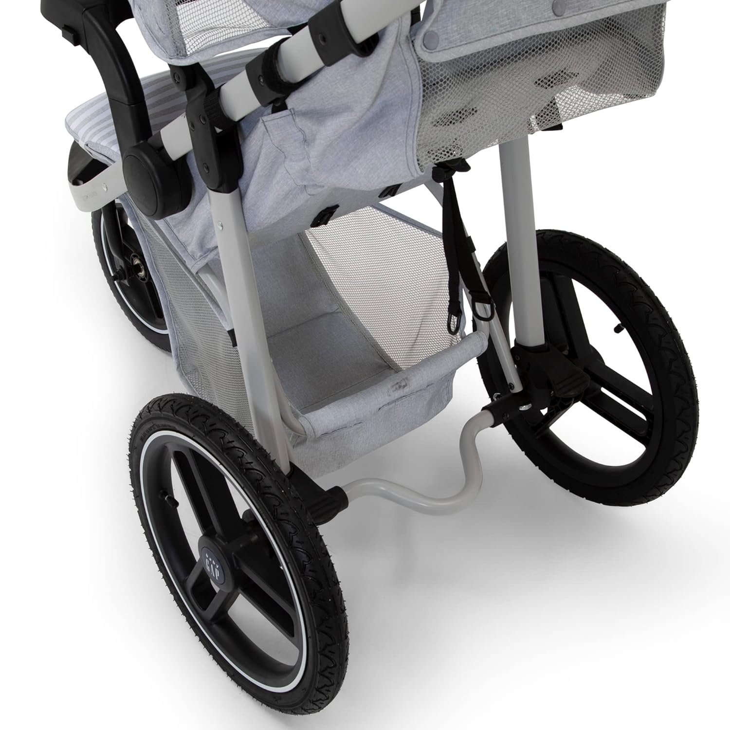 SMOOTH RIDE: 16-inch back wheels with suspension, 12-inch puncture-proof front wheel with swivel lock | Rear brake | Adjustable leatherette handle with safety tether | Swing away child tray for easy loading | Quick release back tires for compact fold