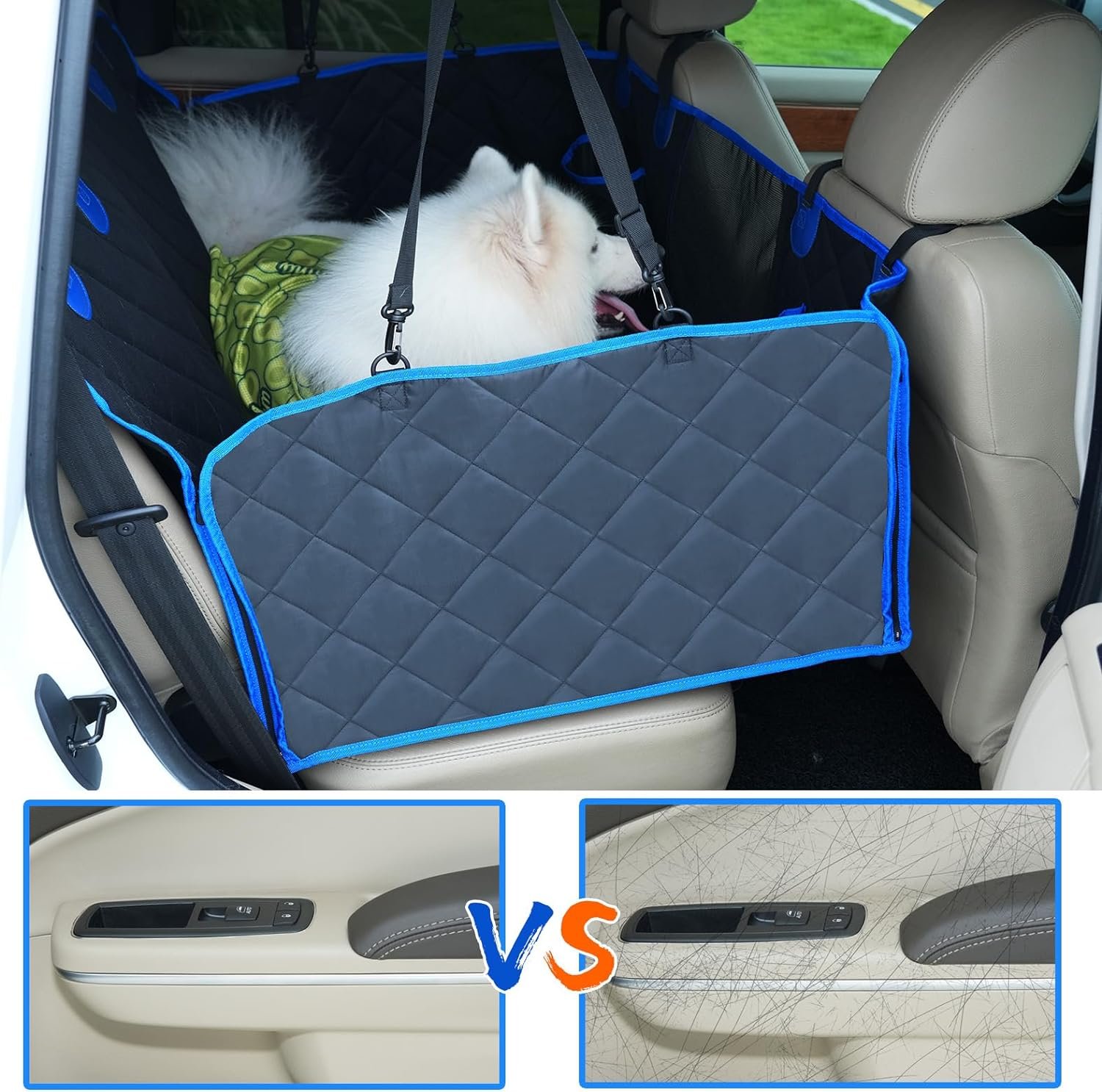 ✅【Waterproof & Wear-resistant】Dog car seat cover made from high-quality 4-layer fabrics, protecting against mud, liquids, hair and any mess that your pets may bring along. This back seat protector for dog is durable enough to prevent scratching leather seats and comfortable for long trips.