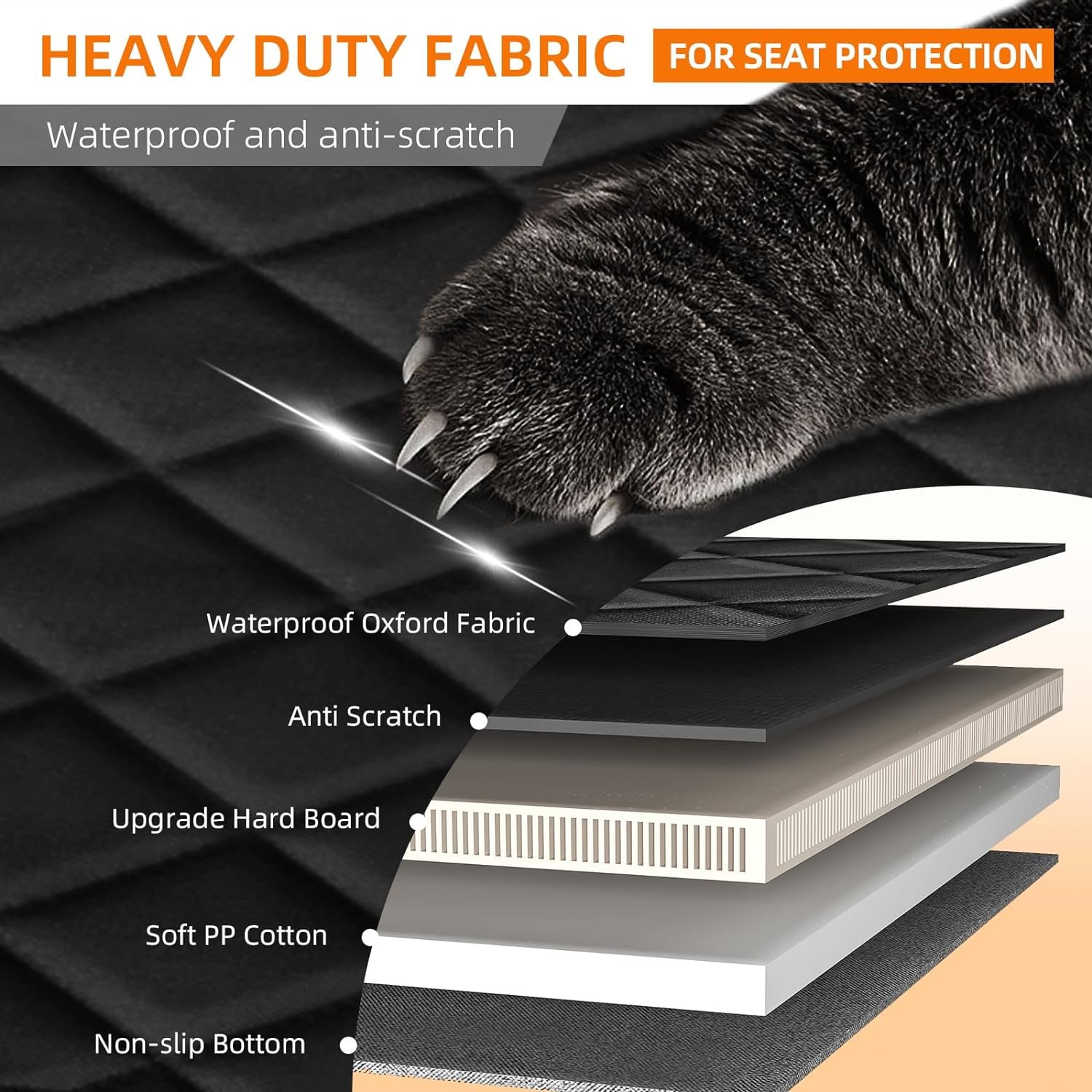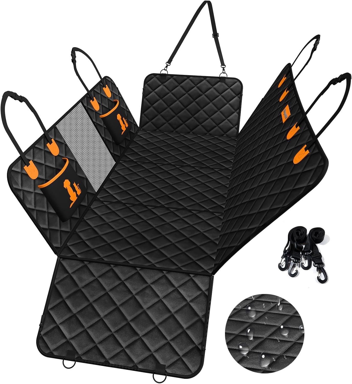 【Car seat protector】Side flaps with up/down zippers are easier to help elderly dogs get in and out of the car and also protect your car’s back seat and door from scratches.Our seat back cover includes 4 adjustable headrest anchors and 2 seat anchors to keep your dog safe and secure during car rides.