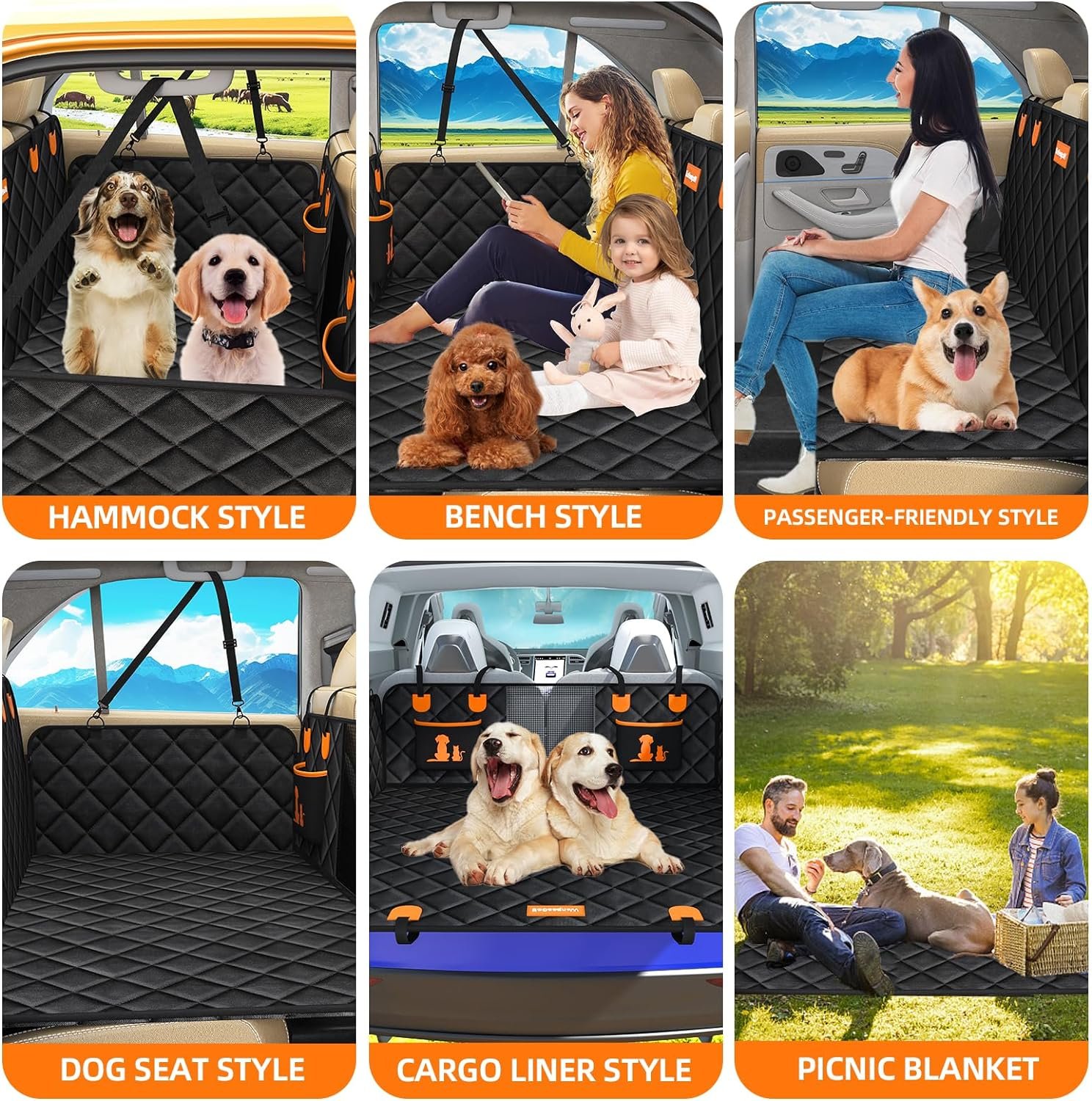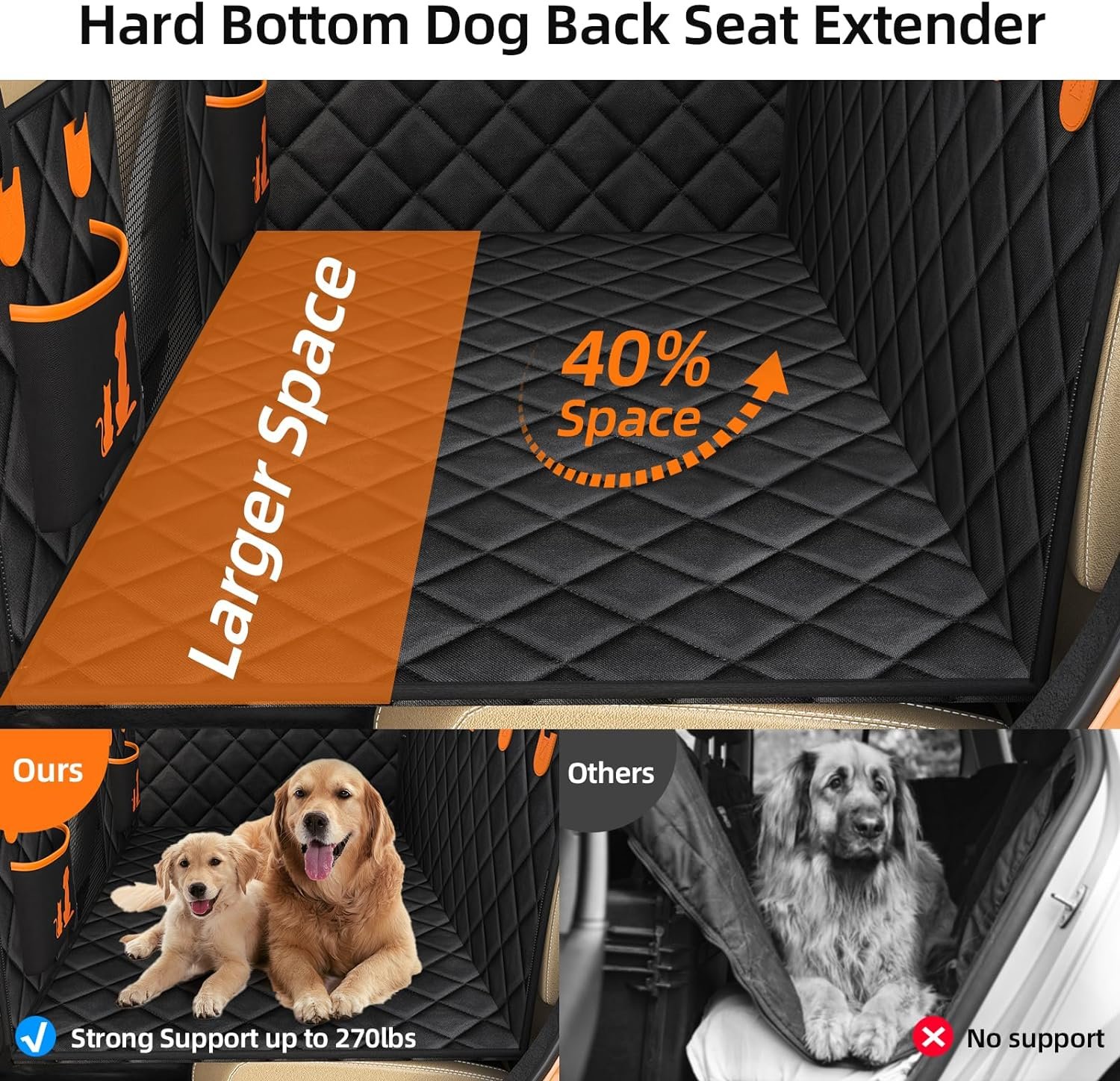 【Waterproof, non-slip and easily clean】WanpeeGoo car back seat extender for dogs is made of 600D oxford fabric, 100% waterproof dog car seat cover for back seat and no longer need to worry about dust, spills, and pet hair will be dirty car back seat, simple cleaning and wiping will be dry and clean.The non-slip seat cover backing keep your dogs from slipping.