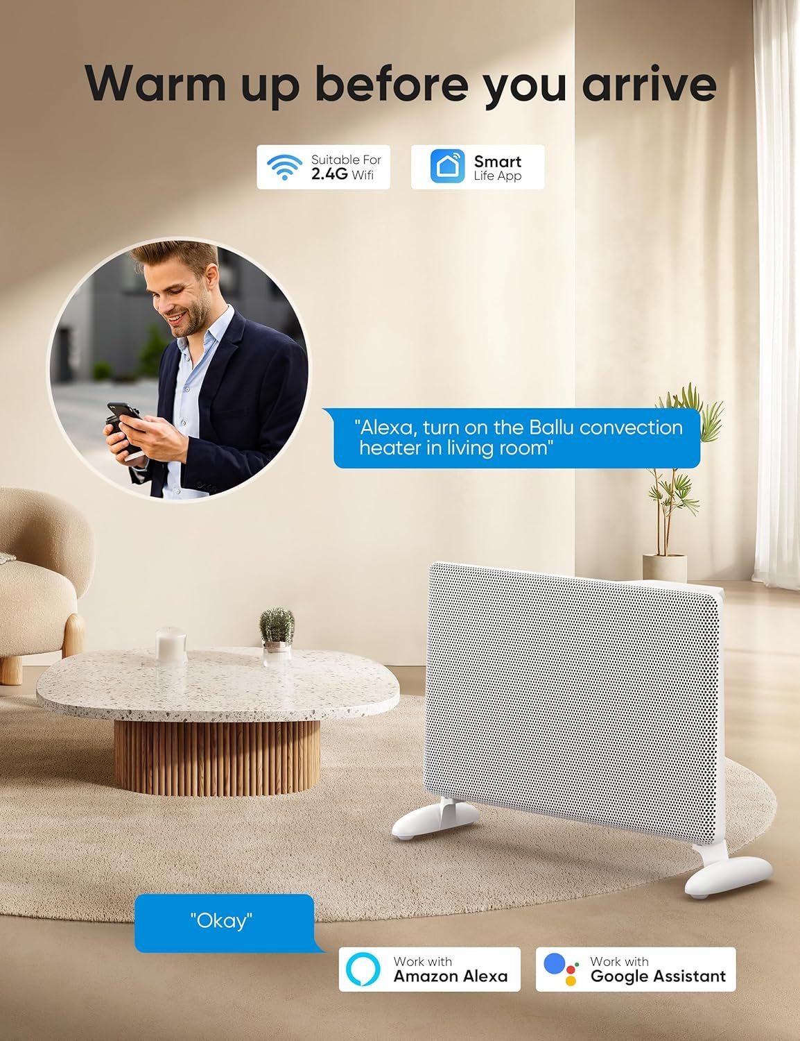Perfect Safety: Ballu Panel convection heater consists of metal body, v0-rated flame-retardant power cord,and plug with multiple safety features,including smart tip-over protection,overheat protection,and a 24-hour timer for added peace of mind.