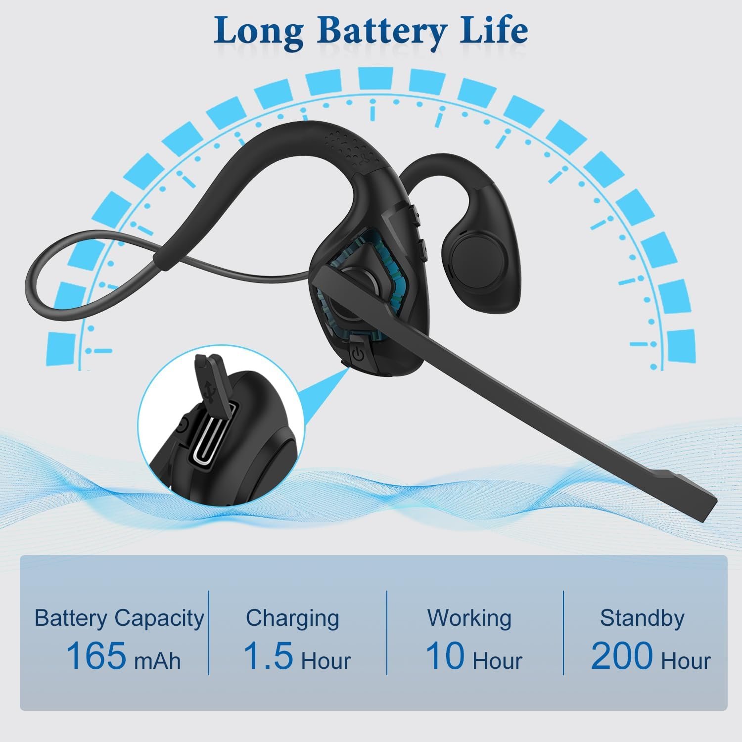 🔋【Multifunction Button and Long Battery Life】Bluetooth headset for work with multi-function buttons for easy operation, turn on/off, play/pause music, activate voice assistant, switch between music/game modes, answer/hang up/reject calls. It with durable and long battery life, it has a built-in high-capacity 165mAh rechargeable lithium-ion battery with up to 150 hours of standby time and Type-C USB fast charging of about 1.5 hours, you can enjoy 10 hours of uninterrupted music/calls.