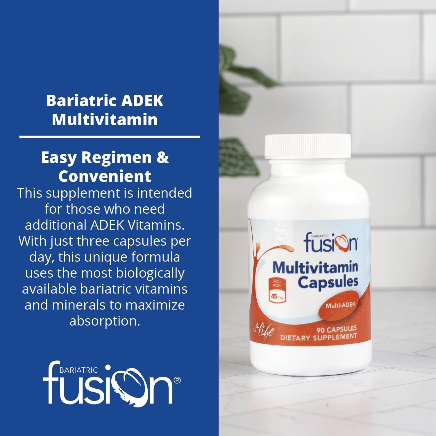 Max Potency: Each easy to swallow capsule contains the highest amounts of 21 Bariatric specific essential vitamins and minerals required after bariatric surgery with additional Vitamin ADEK. Packed with over 21 Bariatric specific vitamins and minerals including 45mg of Iron.