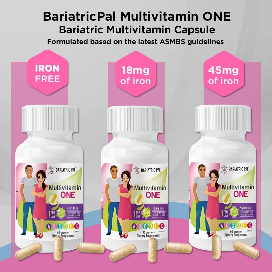 BariatricPal Multivitamin ONE “1 per Day!” Bariatric Multivitamin Capsule is also available with 45mg of Iron here.
