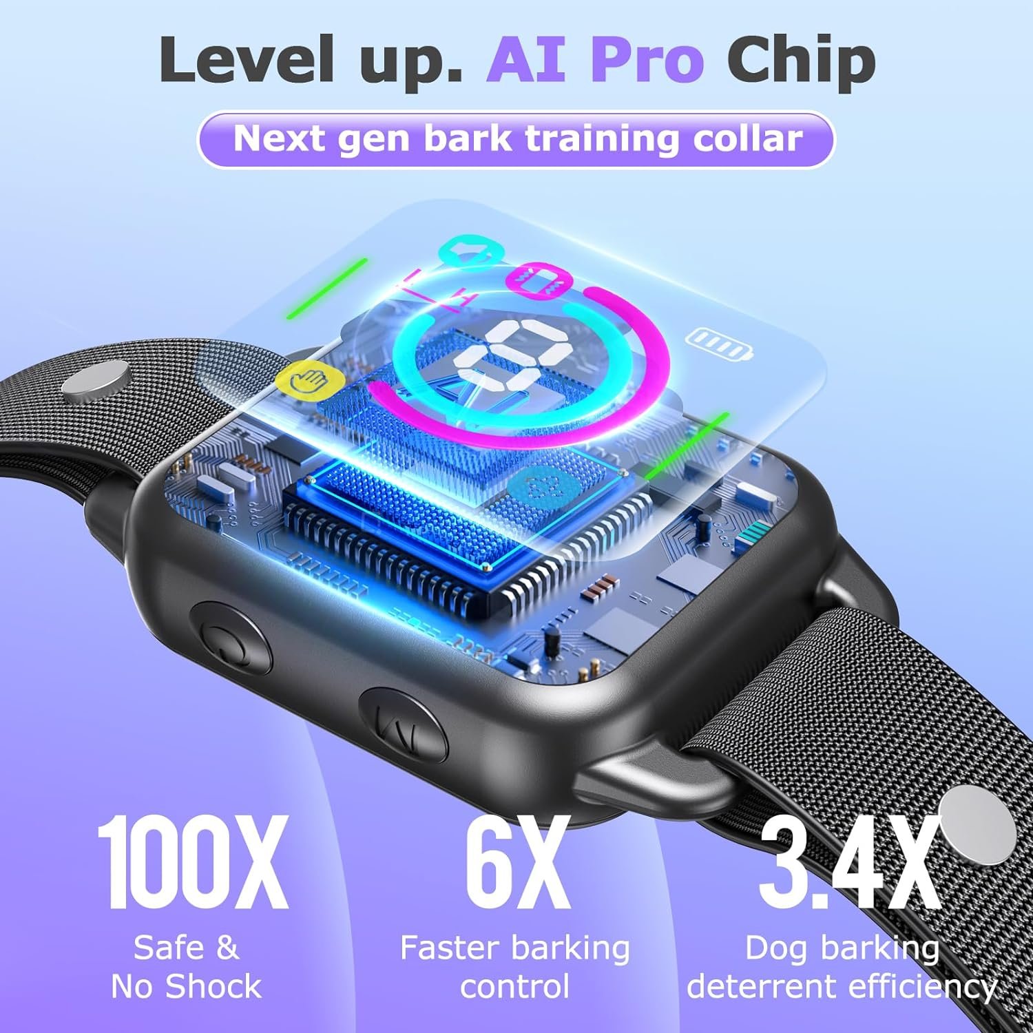 ❤️【2024 Upgraded Bark Collar】NO SHOCK bark collar has been a game-changer in minimizing your dog’s excessive barking. Equipped with new AI pro smart chip, this innovative device utilizes advanced technology to detect and differentiate between barking and other sounds, ensuring accurate and effective bark correction, preventing any false triggers from surrounding sounds.