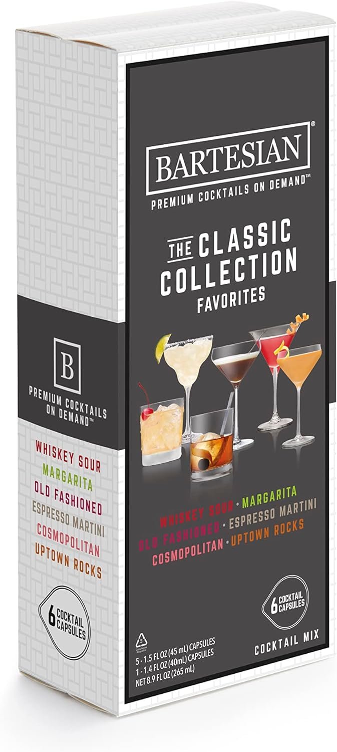 Bartesian Premium Cocktail and Margarita Machine with The Classic Collection Cocktail Mixer Capsules, Variety Pack of 6 Cocktail Capsules