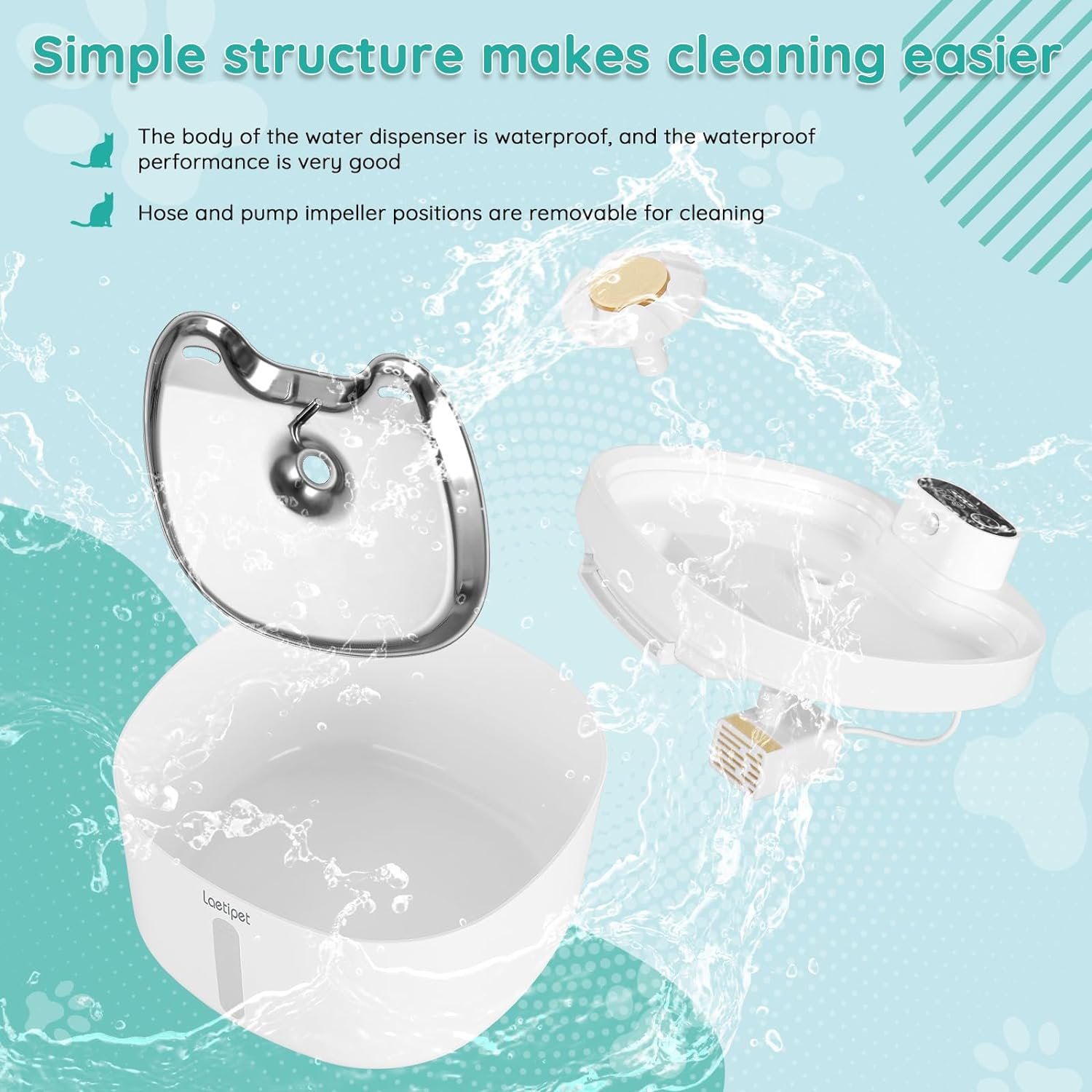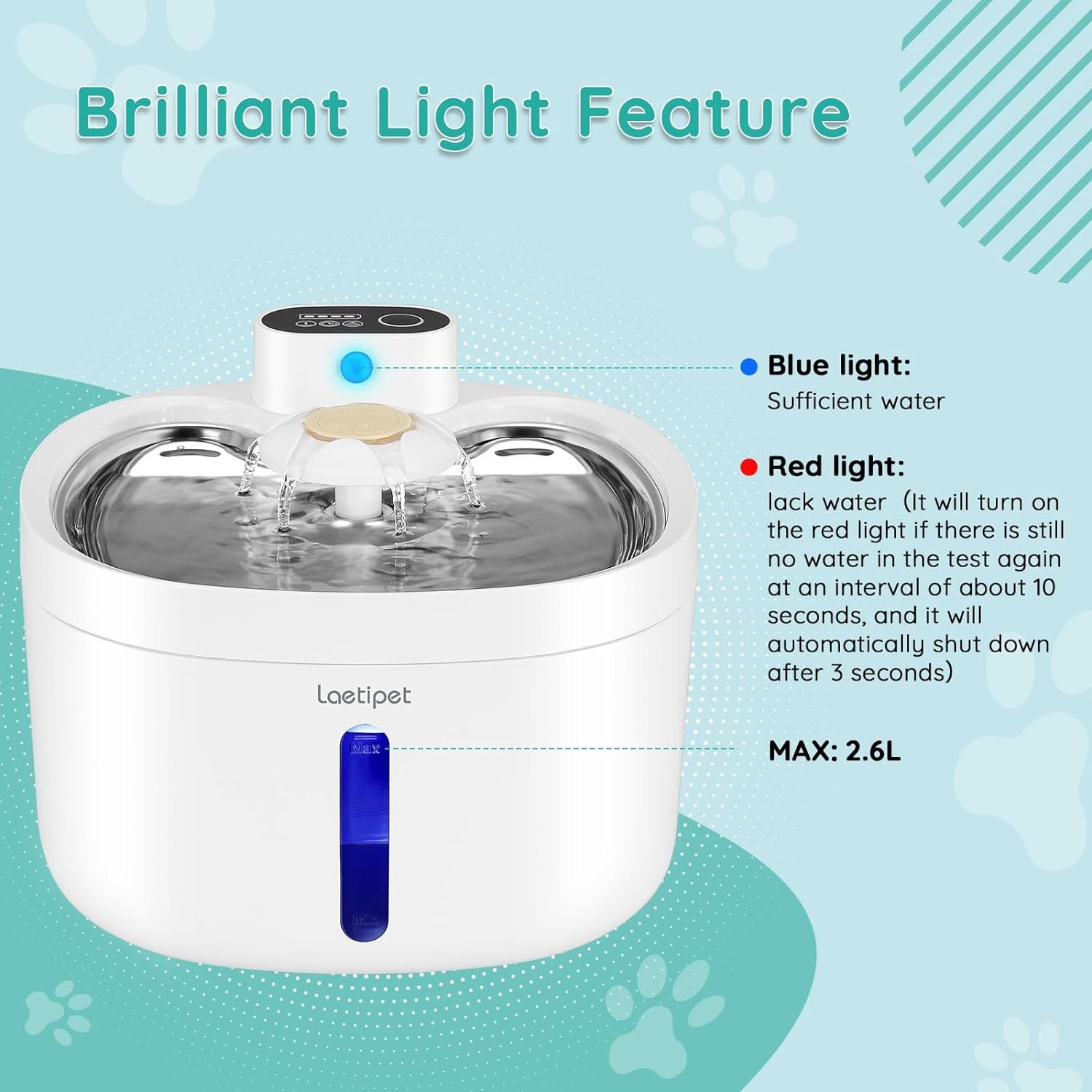 🐱🐶【Illuminated Design with Built-In LED】Equipped with a translucent water tank and a built-in LED light, our cat water fountain lets you easily monitor the water level. The bright LED not only serves as a night light but also guides your cat to the water source faster
