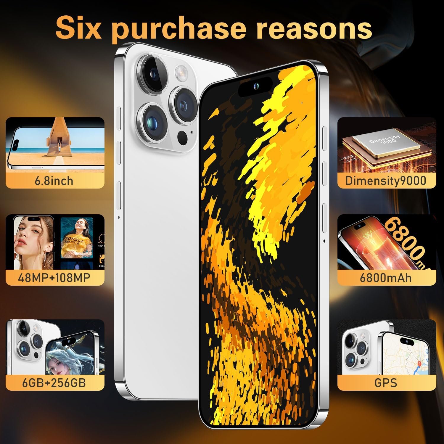 【6800MAh Big Battery & 20W Fast Charging】Long hours of playing games without seeking a charger have seldom been possible until you meet the BDWJW A14 Pro Max with a gargantuan 6800mAh battery that will lengthen your endless entertainment! Plus, binge-watching, live streaming, gaming, or calling can go on for days as you are battery anxiety-free.