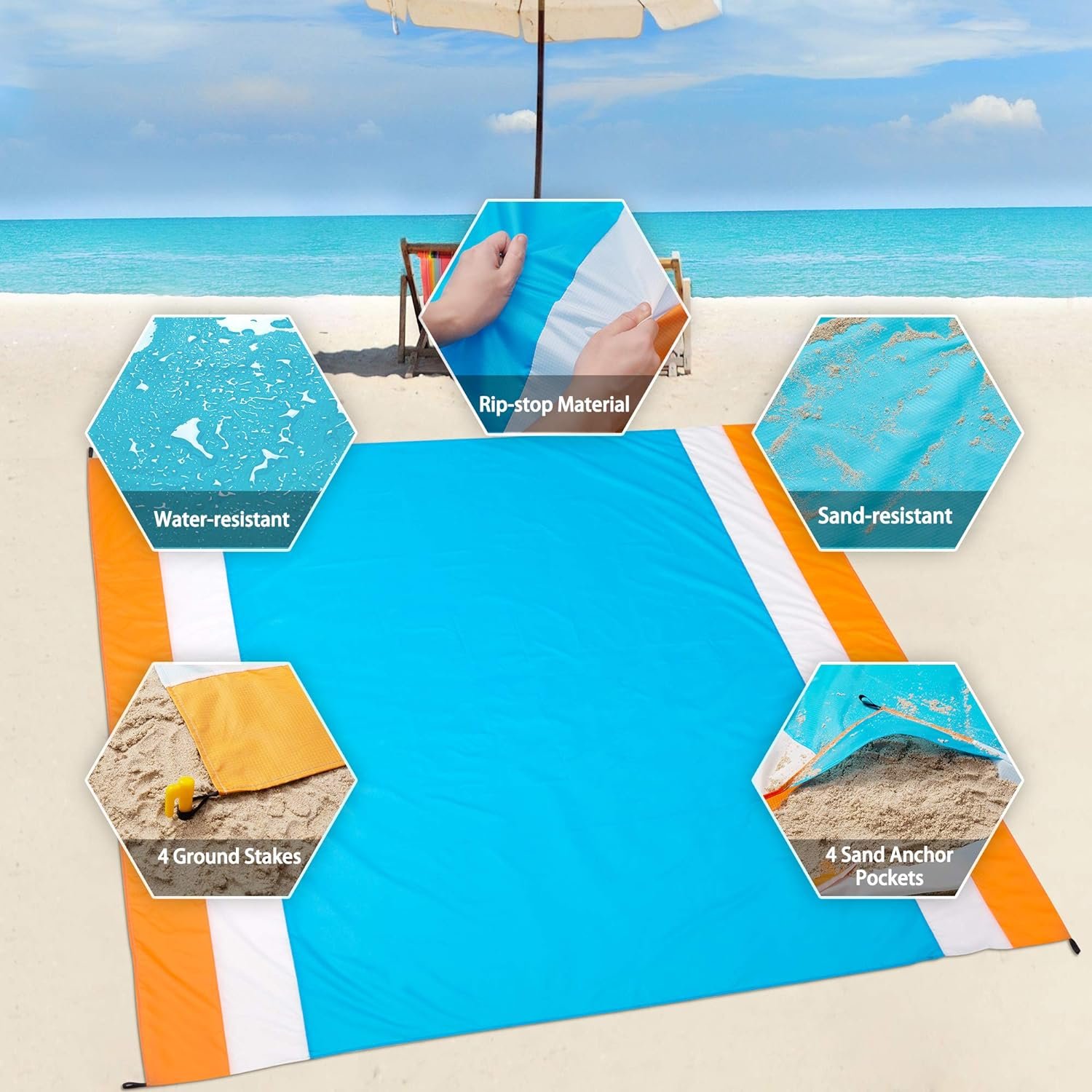 Sandproof &Dry-Quick Water resistant Wind Resistant Durable&Lightweight Easy to Clean Machine washable Easy to carry Beach gifts for family or friends