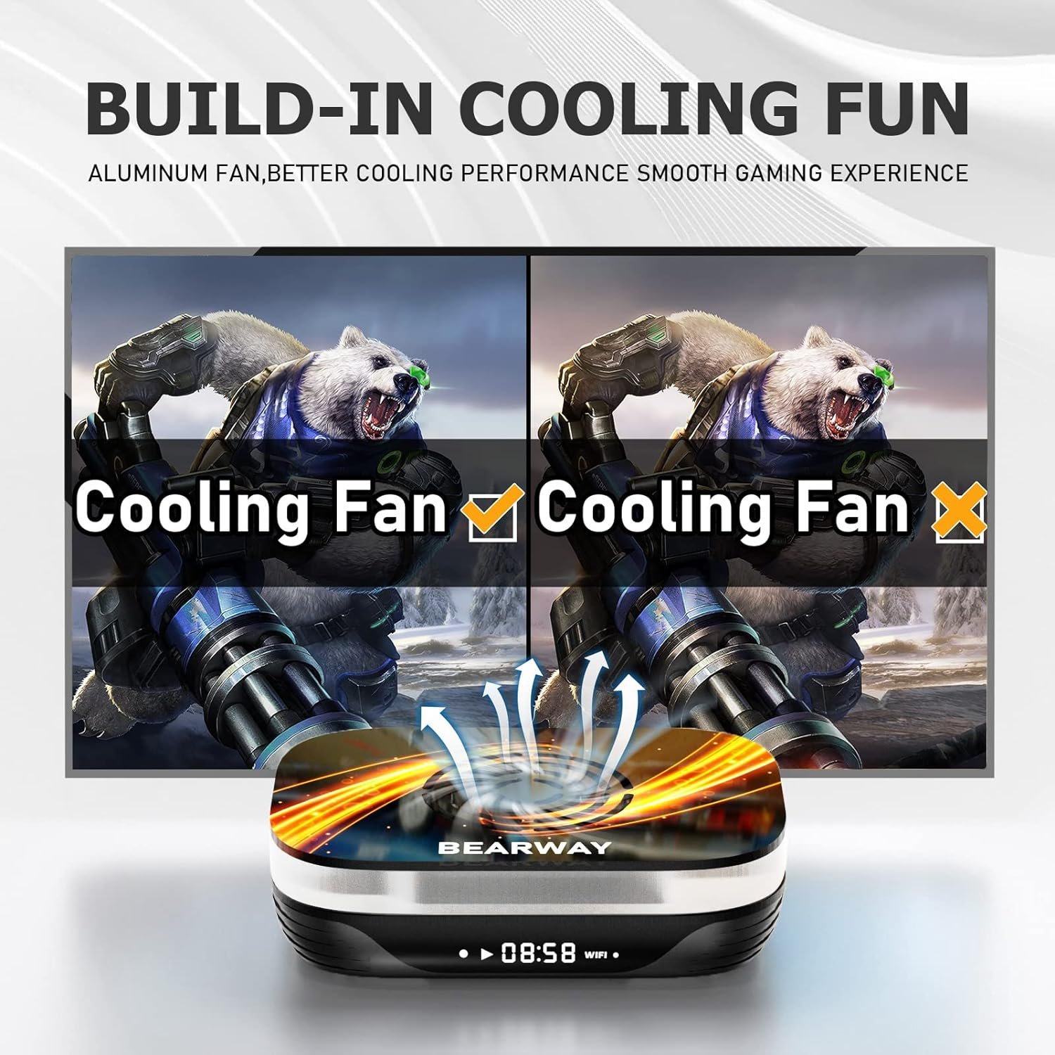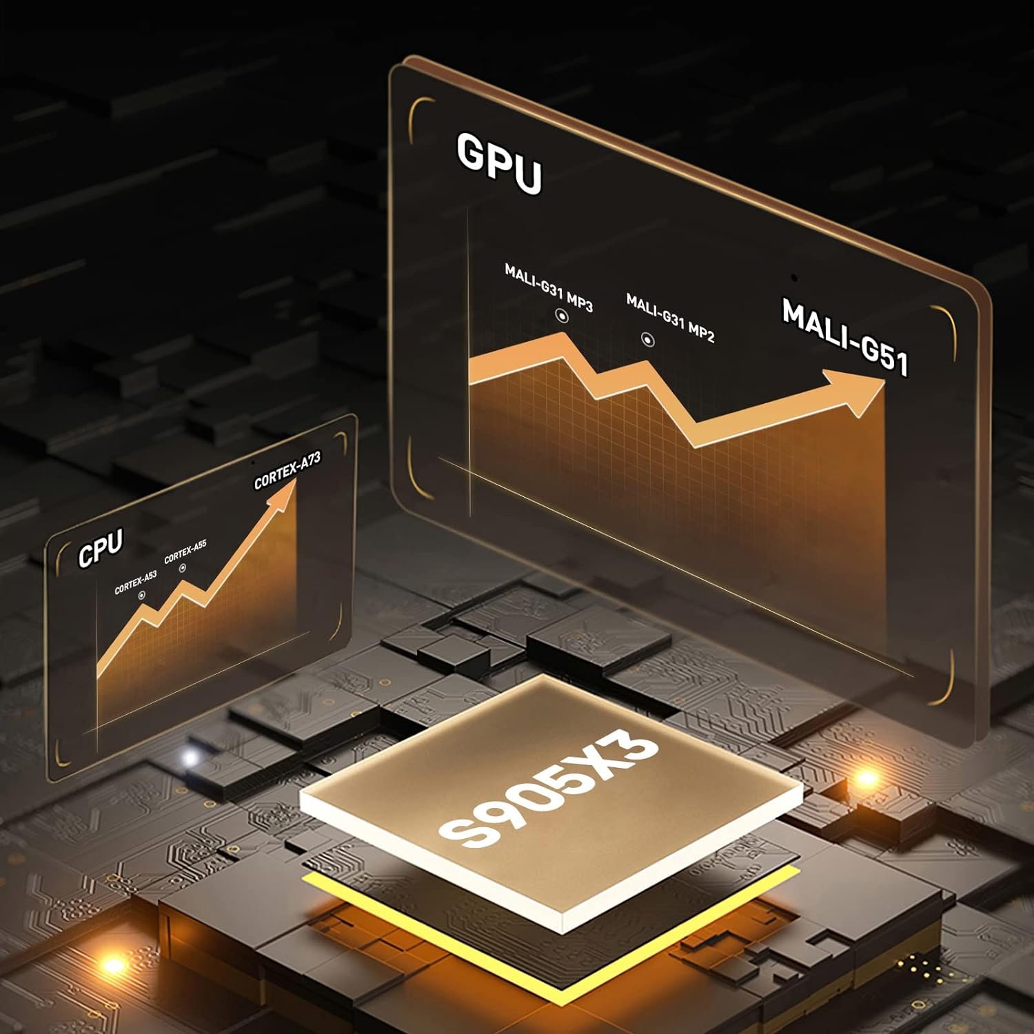 😀Built-in powerful Amlogic S905X3 chip, Quad core cortex-A55 Ultra high-frequency CPU, 4GB RAM+32GB ROM,2.4G+5G,Ethernet 1000M LAN , USB 3.0 transmission speed is faster, loading games and videos are smoother, BT4.0,easy connection, built-in uniquely designed cooling fan, Rapid cooling, greatly alleviate frame drop and freeze problems, 8K high-definition output, providing you with an amazing visual experience