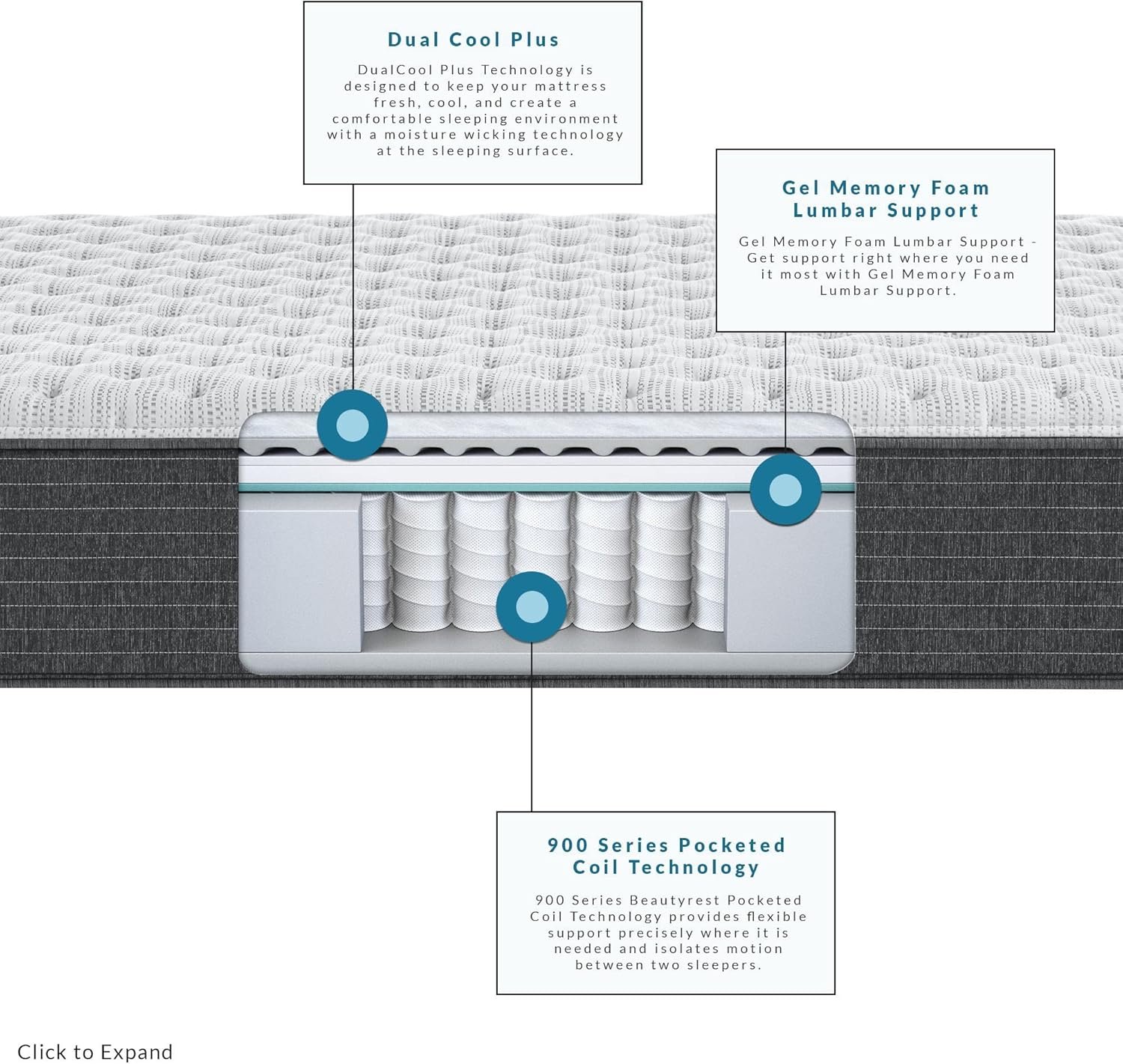 900 Series Beautyrest Pocketed Coil Technology: Provides flexible support precisely where it is needed and isolates motion between two sleepers.