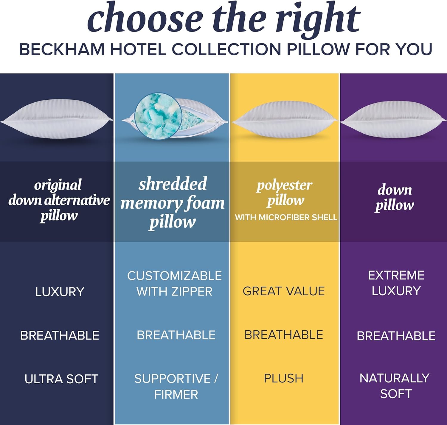 The Beckham Home Collection Original Down Alternative Pillow is designed with super plush fiber and a soft cotton cover. Expertly tailored to ensure maximum comfort in any and all sleeping positions.