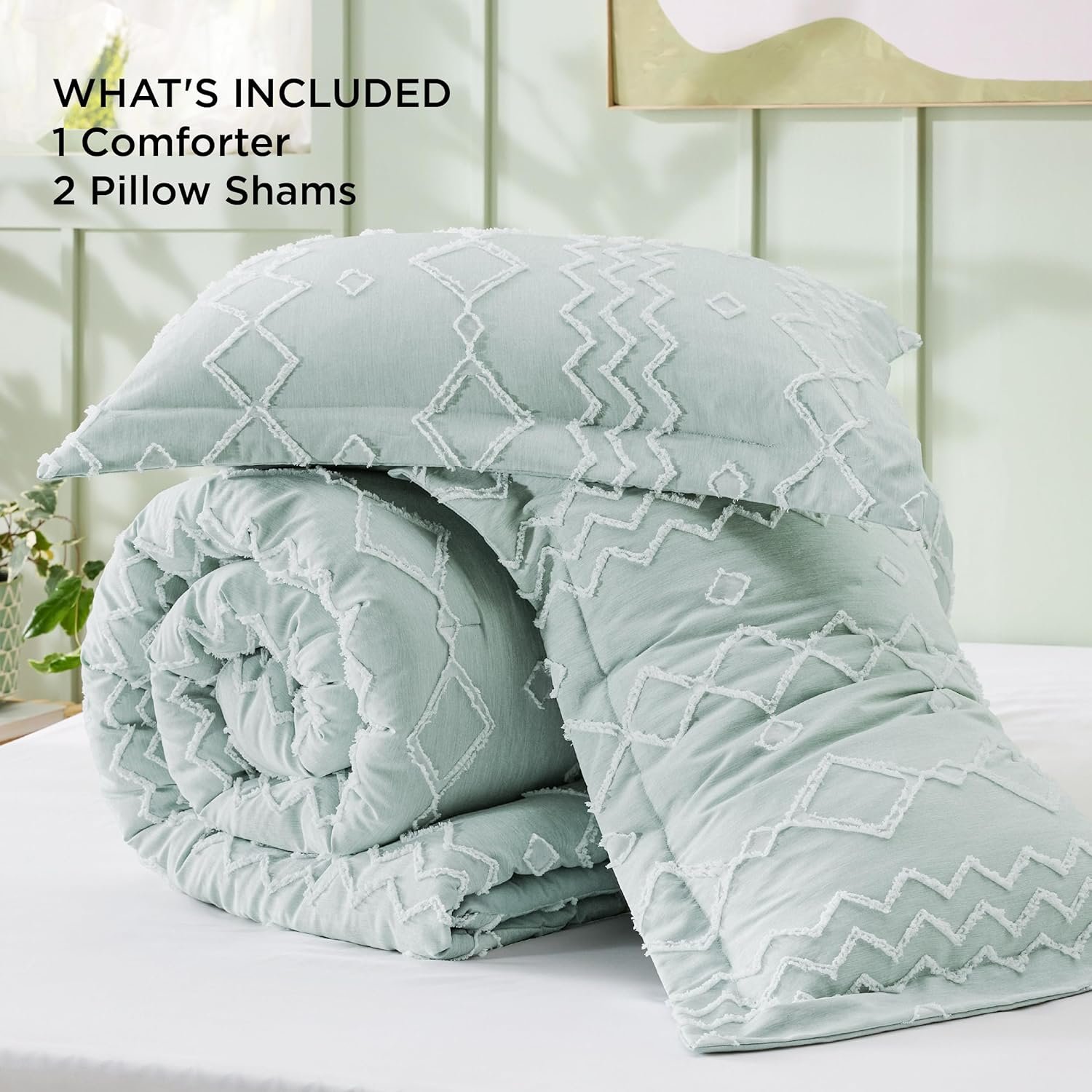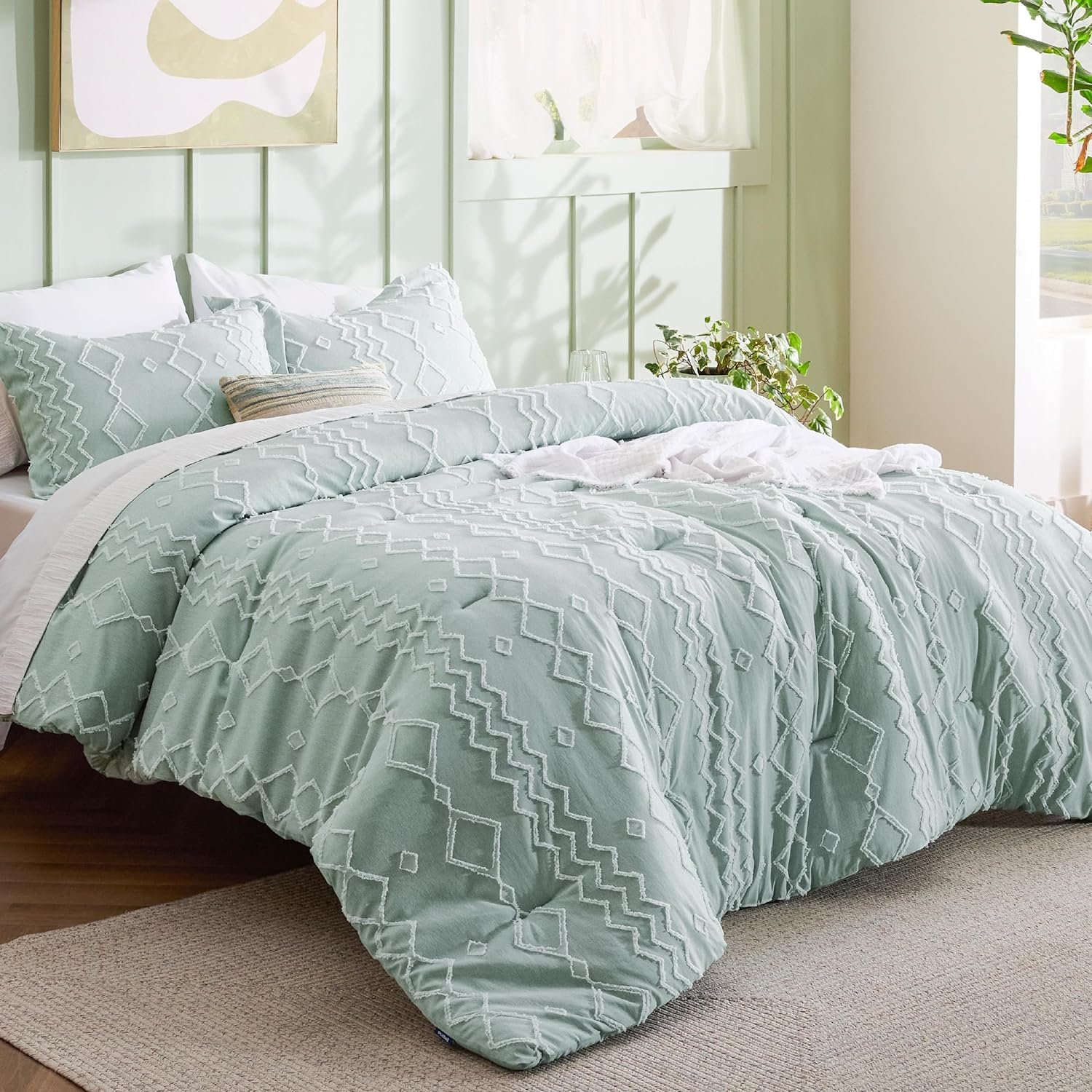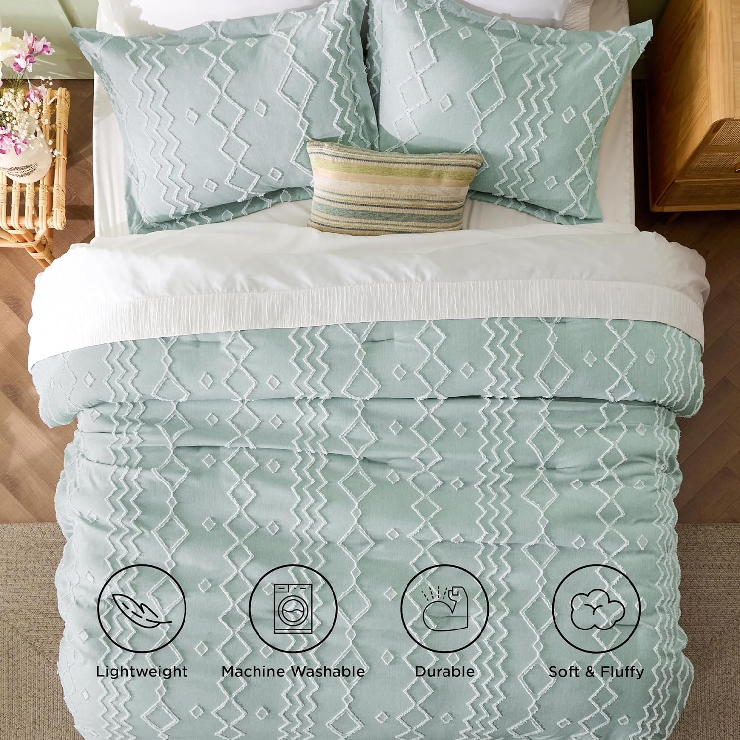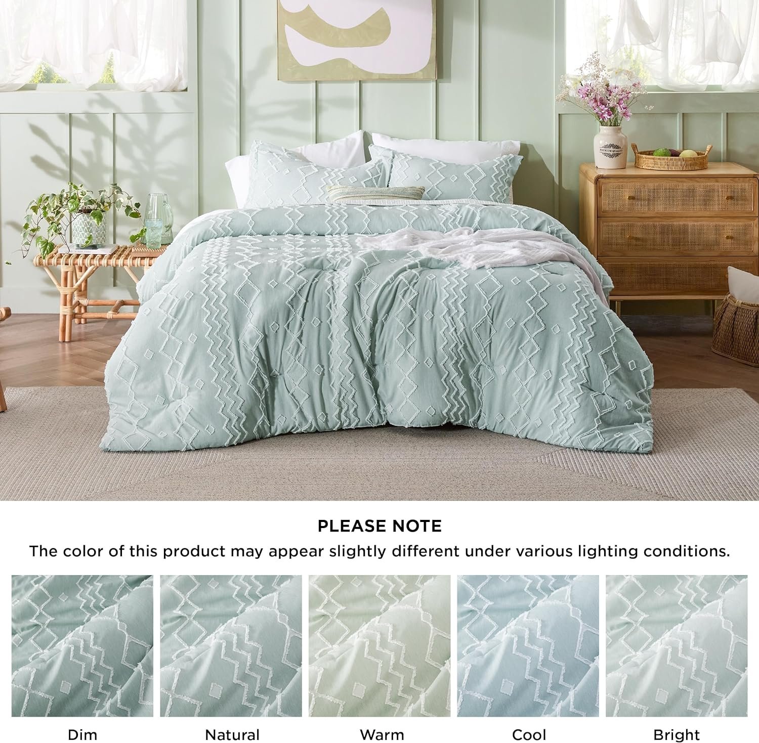 Elegant Design: This boho comforter set effortlessly and stylishly refreshes your bedroom with its timeless geometric tufted embroidery design. It also features a subtle dual-color noise effect, achieved through the cationic dyeing technique.