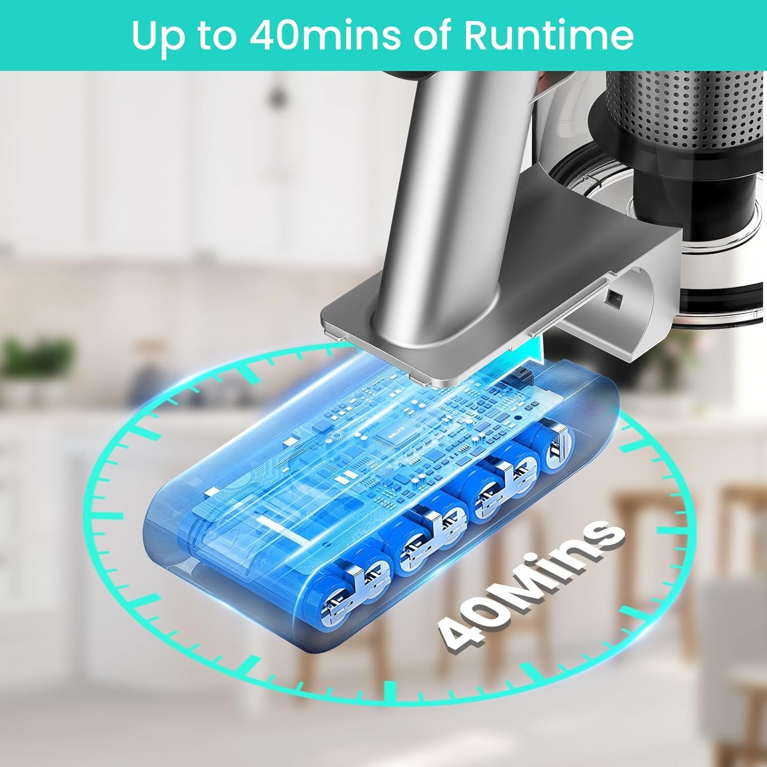🎁Powerful Suction & Long Runtime: The S10 vacuum is equipped with a 93000RPM high-speed digtal motor that creates a high-speed airflow. The 28KPa suction at the “Max” mode is suitable for deep cleaning spots. The total 14000mAh large-capacity battery provides up to 40mins of runtime at the “Min” mode, ensuring convenient whole-house cleaning.