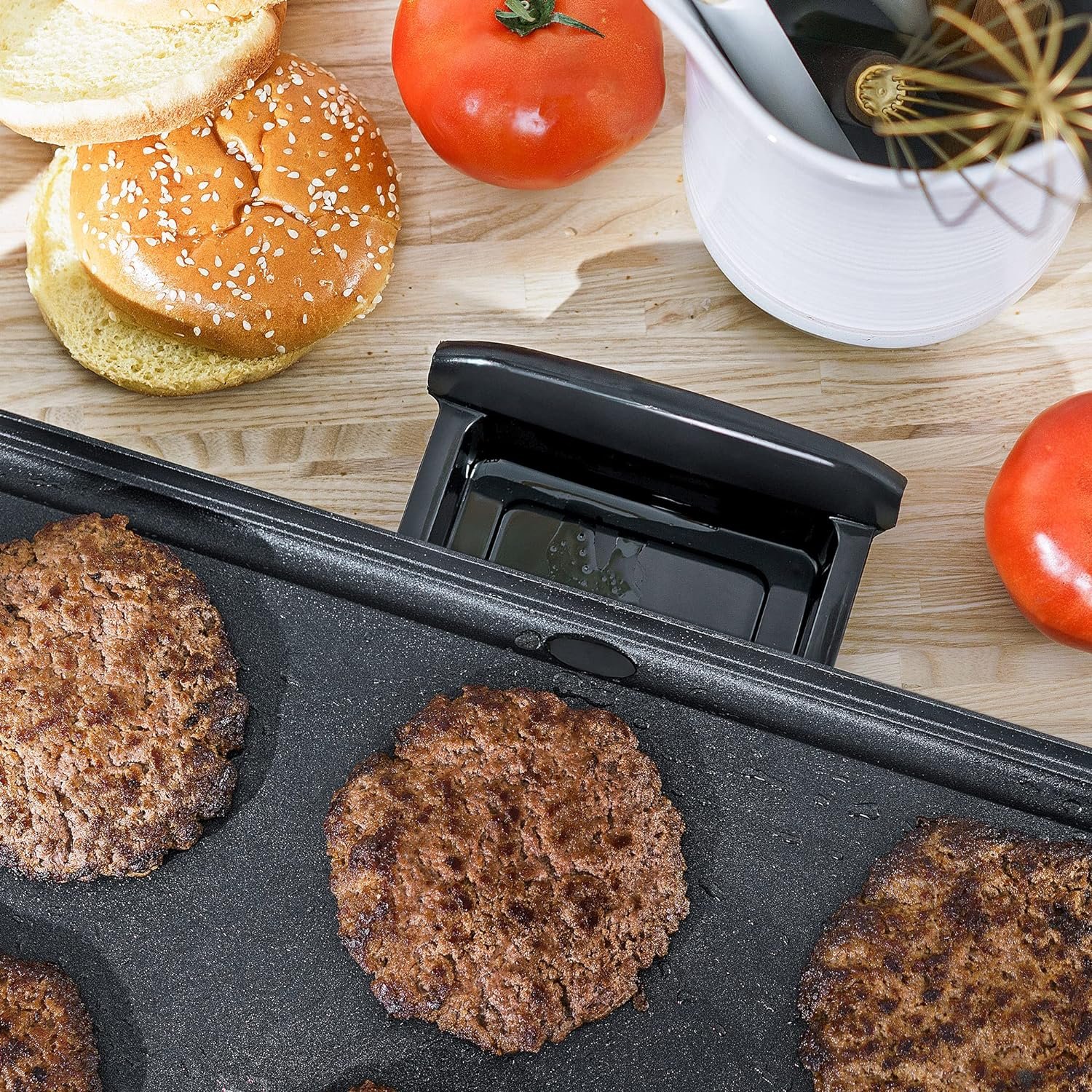 CONVENIENT: With an adjustable temperature dial and removable probe, this stove top griddle has everything you need for precision control. The drip tray collects fat and juices for healthier cooking, while the warming tray keeps food warm until serving