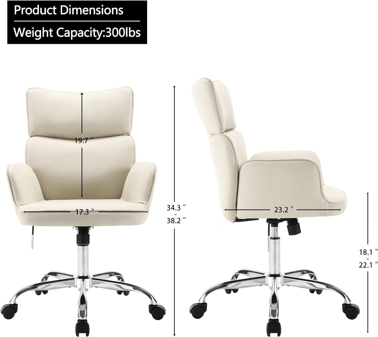 ✅【Modern Style & Premium Pu Leather】This mid-back office chair features a modern design with a beautiful appearance, providing you with a comfortable sitting experience and decorating your home/office. In addition, the smooth PU surface ensures good breathability, can be easily cleaned with a rag, waterproof and wear-resistant. Perfect for office, bedroom, study, living room, dresser, parlor, and bedroom. Note: The product’s color may vary slightly under different light conditions.