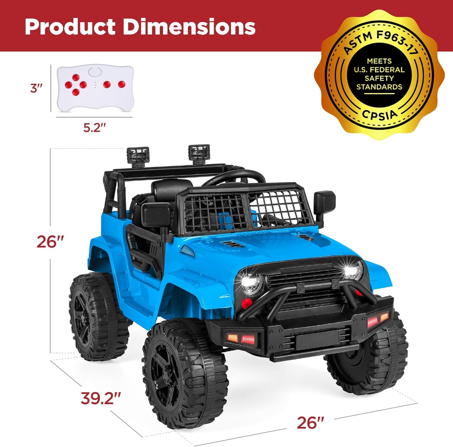 CONNECT YOUR MUSIC: A built-in AUX outlet allows kids to plug in media devices to drive while jamming to their own selection of music; OVERALL DIMENSIONS: 39.25″(L) x 26″(W) x 26″(H); Weight Capacity: 61 lbs.