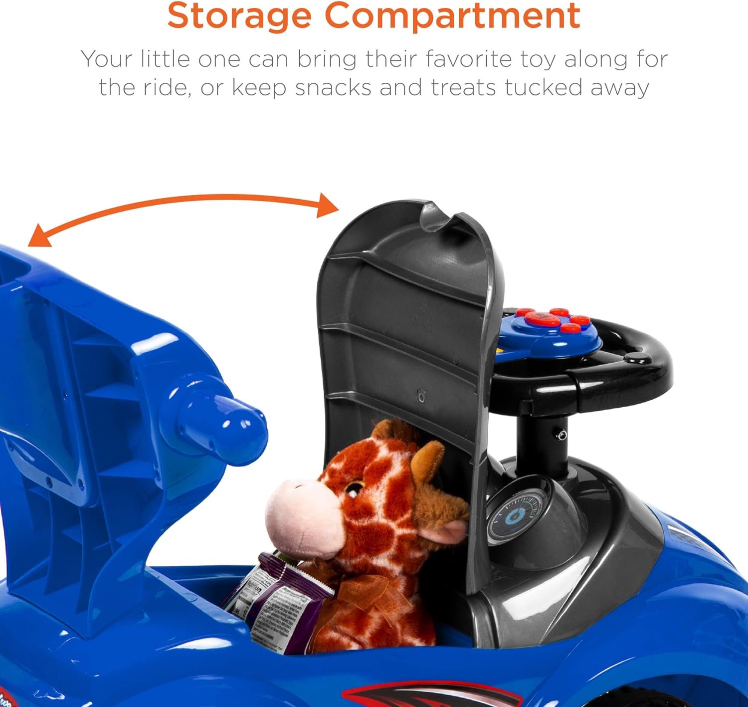 STORAGE COMPARTMENT: Seat doubles as a carrying space for favorite toys, snacks, or whatever treasures your child finds on their adventures