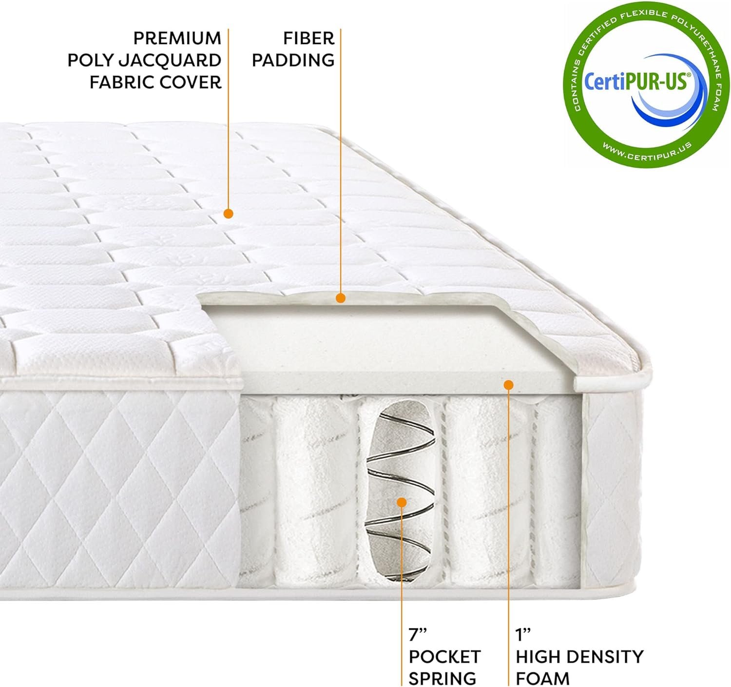 Classic tight top pocket spring mattress with comfort high density foam top and 7-inch pocket springs,Individually wrapped pocket springs move independently for contour support and reduced motion transfer for a restful night