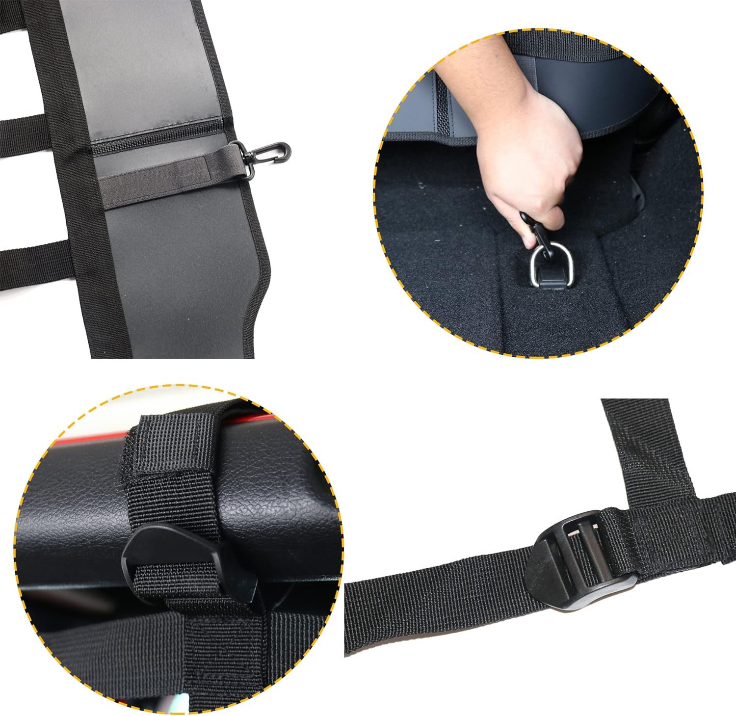✔【UPGRADED VERSION】- Compared with pet nets on the market, BESTAOO dog net adds an additional flaps barrier at the bottom of the net cover to prevent dogs from coming out of bottom. Upgraded metal clips and extension straps, and the side flaps barrier can hold net in place with included suction cups, to prevent the dog moving from the side.