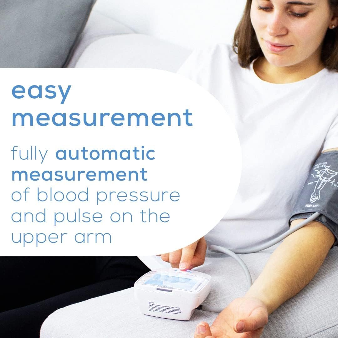 ADJUSTABLE CUFF: The upper arm bp cuff easily fits around small and large arms – once your arm is properly positioned, measuring your bp and pulse rate is just the touch of a button away