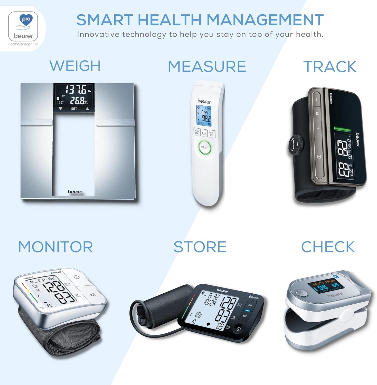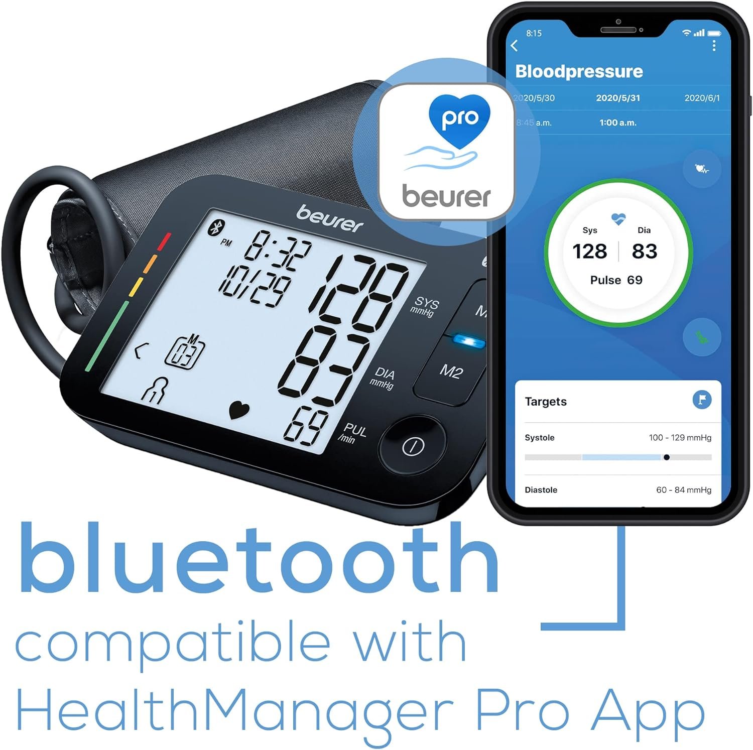 BLUETOOTH: Connect to your smartphone via our free Health Manager Pro app – unlimited digital memory through wireless transfer or 120 memory sets for up to 2 users on the device