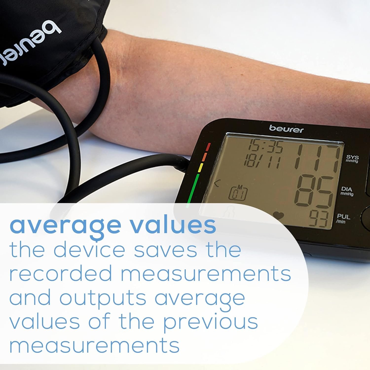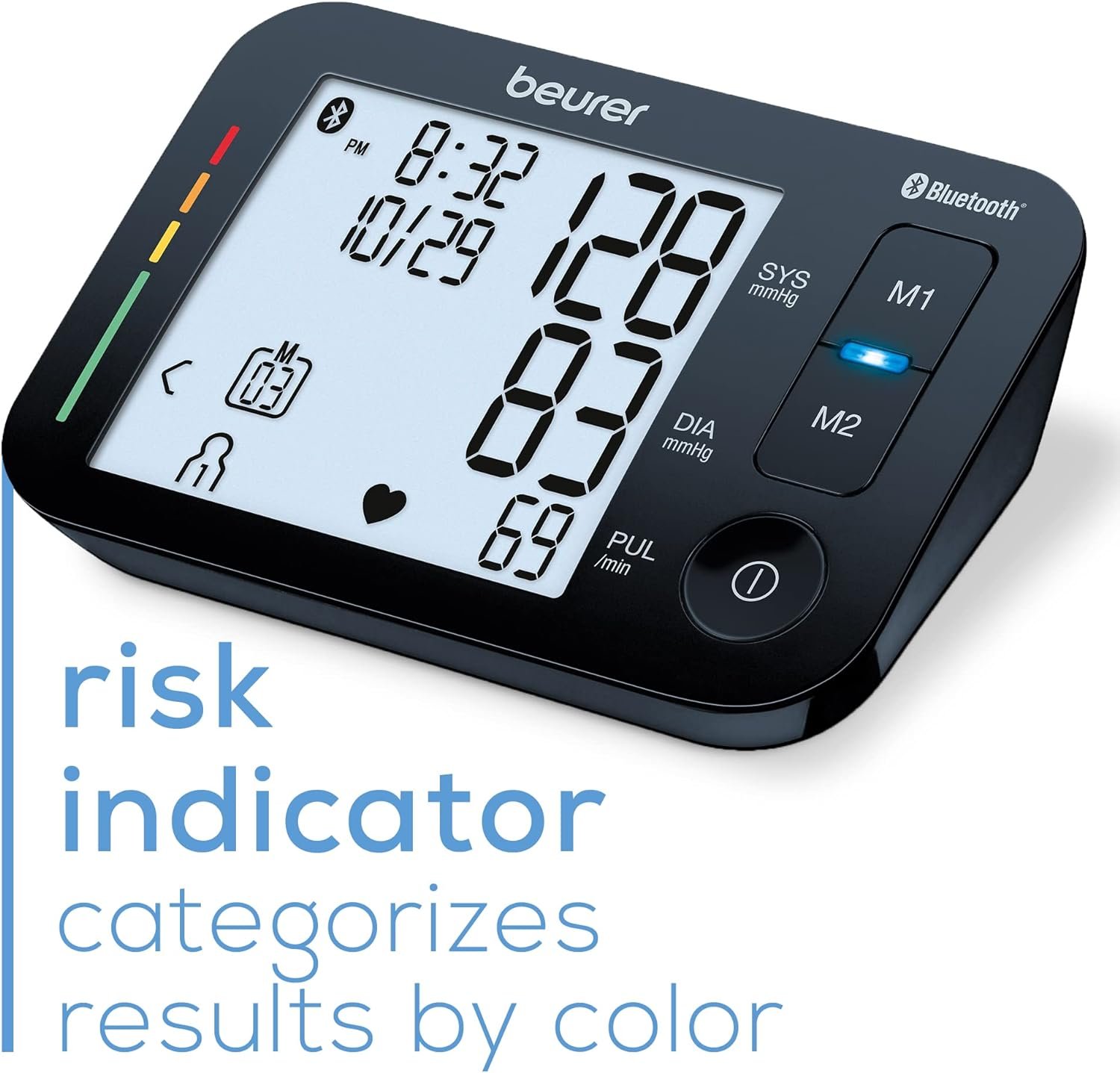 RISK INDICATOR: Our bp reader has a risk indicator based on guidelines set by the World Health Organization, quickly interpret a high or low number based on the chart