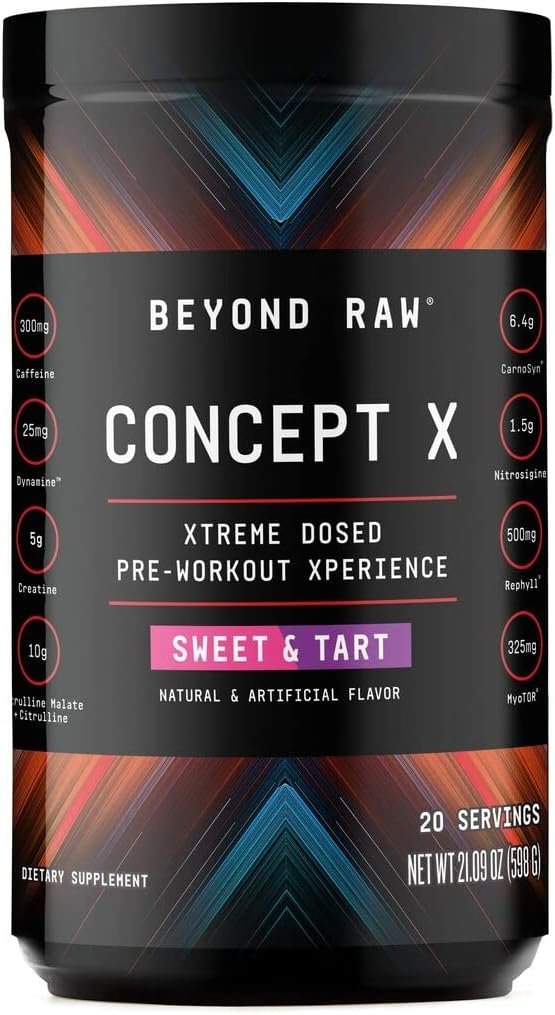 A Pre-Workout Xperience Like Nothing You’ve Imagined. Be ready to push your body’s limits of energy, strength, endurance, pumps and focus. BEYOND RAW Concept X is a first-of-its-kind pre-workout, meticulously engineered to support the demands of next-level training and reduce exercise-related muscle soreness.