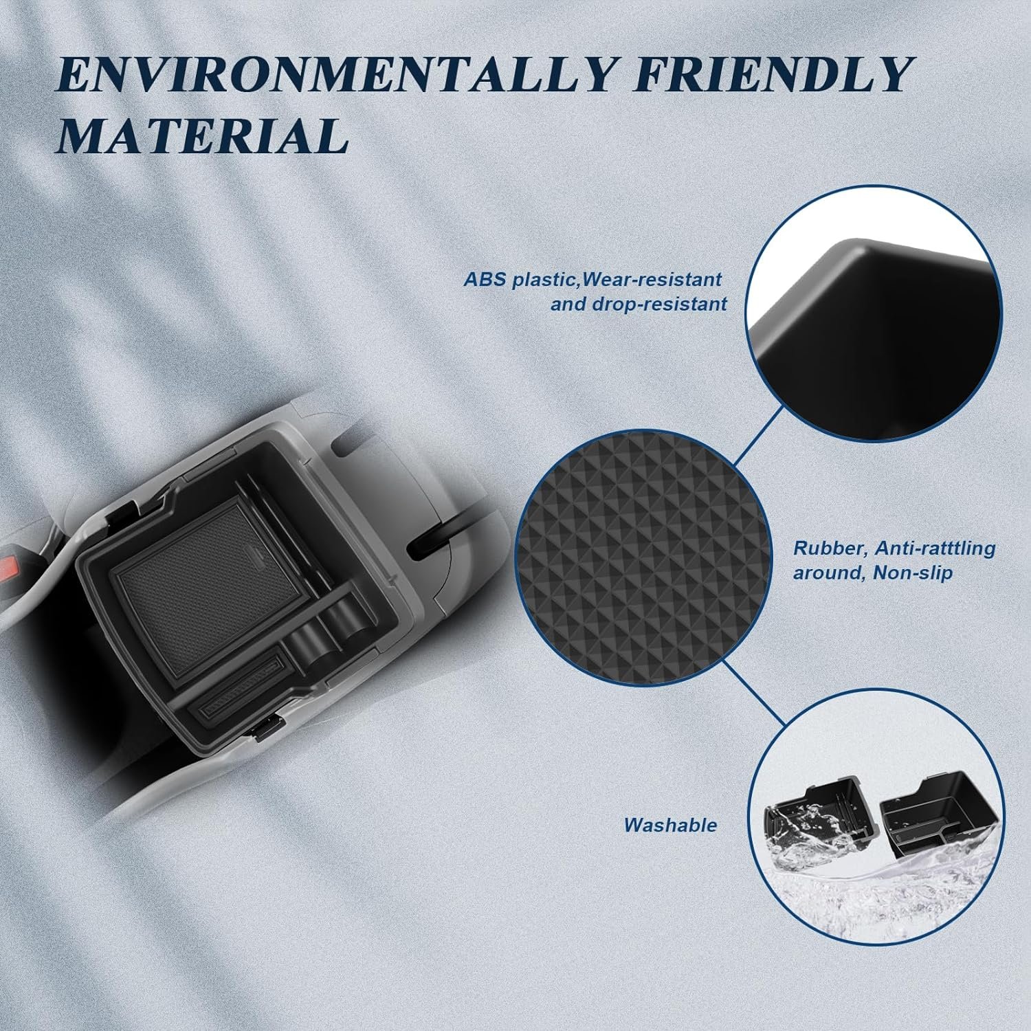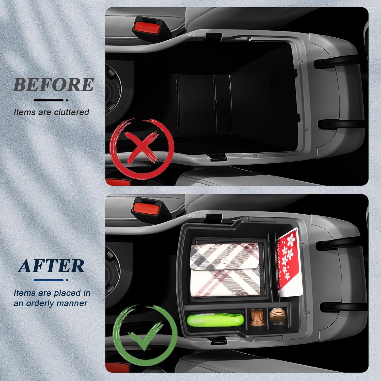 🚗 SUPERIOR MATERIAL: 2024 Kona center console tray is made of high-quality ABS plastic,the surface of the Crosstrek storage box has a good gloss,more wear-resistant and durable,Silicone non-slip mat, environmental protection and no odor, effectively decrease noise, improve grade, exquisite atmosphere.A must-have practical item for 2024+ Hyundai Kona vehicle