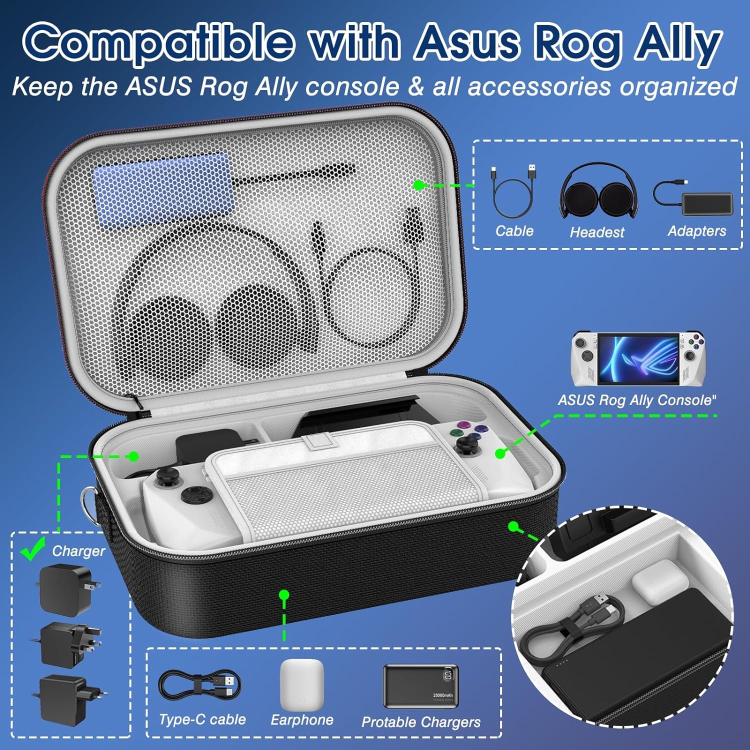 š®ć100%Perfectly Fits the Model for Safe StoragećThis hard shell carrying case provides ultimate protection for your asus rog ally . carry case for asus rog ally is made of high quality material, anti-scratch & shock & water design. The interior liner is made of soft material, Recesses are designed to keep fittings separate, Separate compartment for rog ally accessories, provide full protection for your asus rog ally and all accessories.
