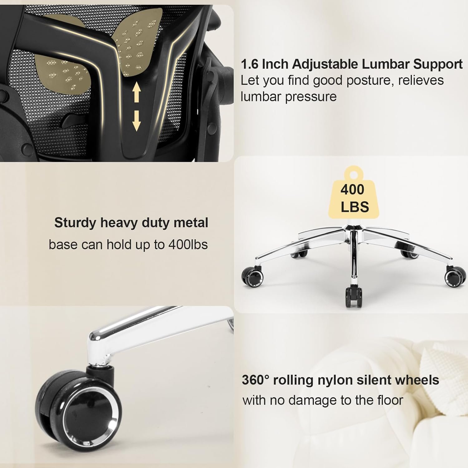 【5 Years Warranty & Excellent Customer Service】The office chair is guaranteed 5 years. if there is any problem, such as missing parts, product damage, or other unsatisfactory issues, please get in touch with us through the Amazon front desk, and we will reply to you within 24 hours and actively solve them.