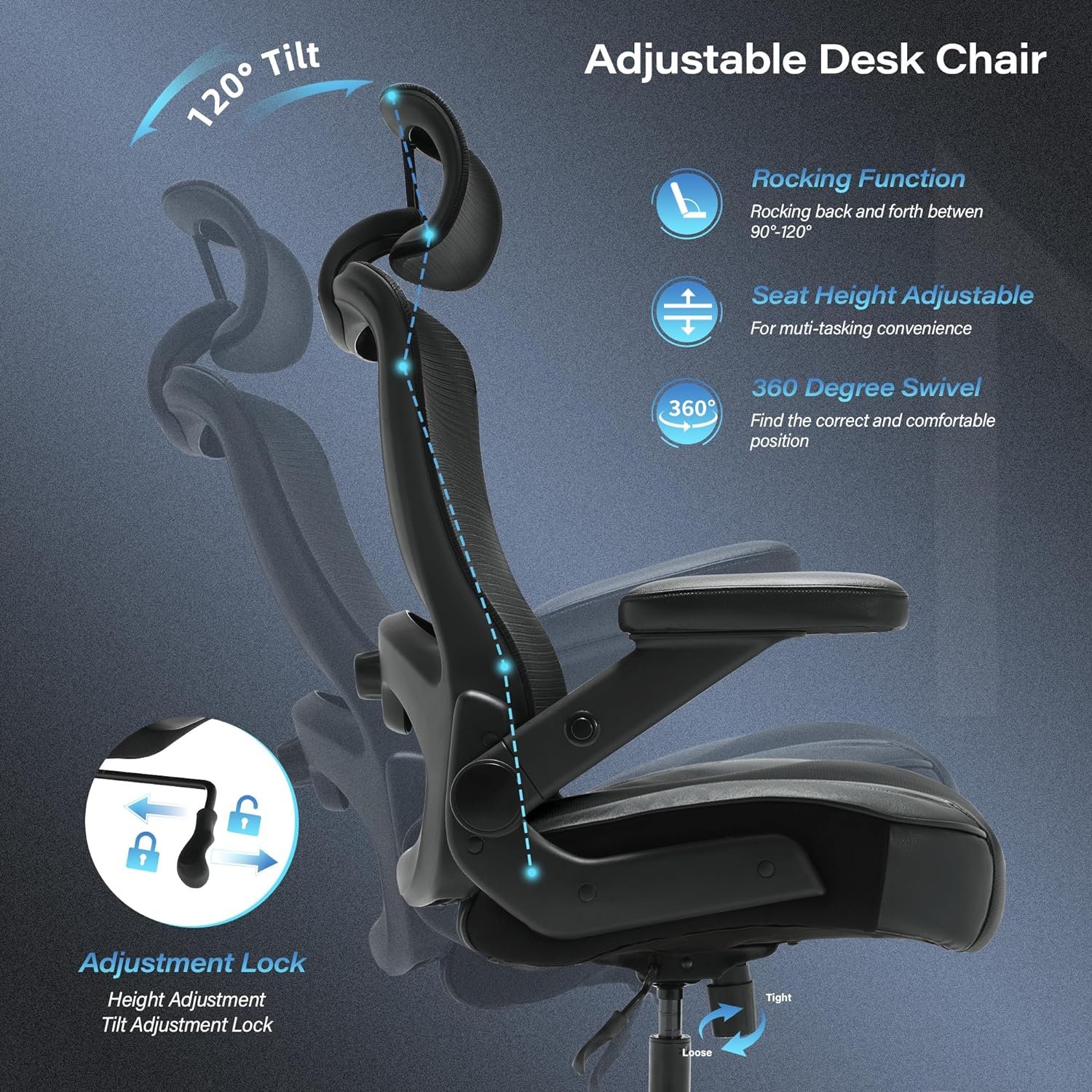 🏁SAVE SPACE WITH OPTIMAL 3D FLIP UP THICK PADDED ARMRESTS: Are you struggling to find the right office chair for your office or apartment? The mesh office chair’s sleek profile and adjustable function make it suitable for different desk heights and setups, ensuring a comfortable and productive work environment. Experience maximum comfort and take up minimum space with the 3D adjustable armrests. Whether you’re typing, writing, or taking a break, our computer desk chair offers a comfortable sitting experience.