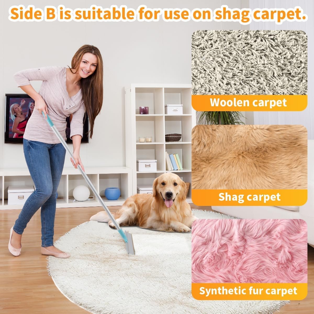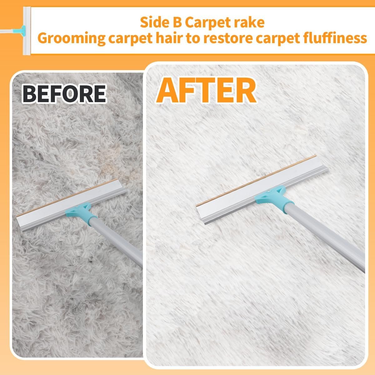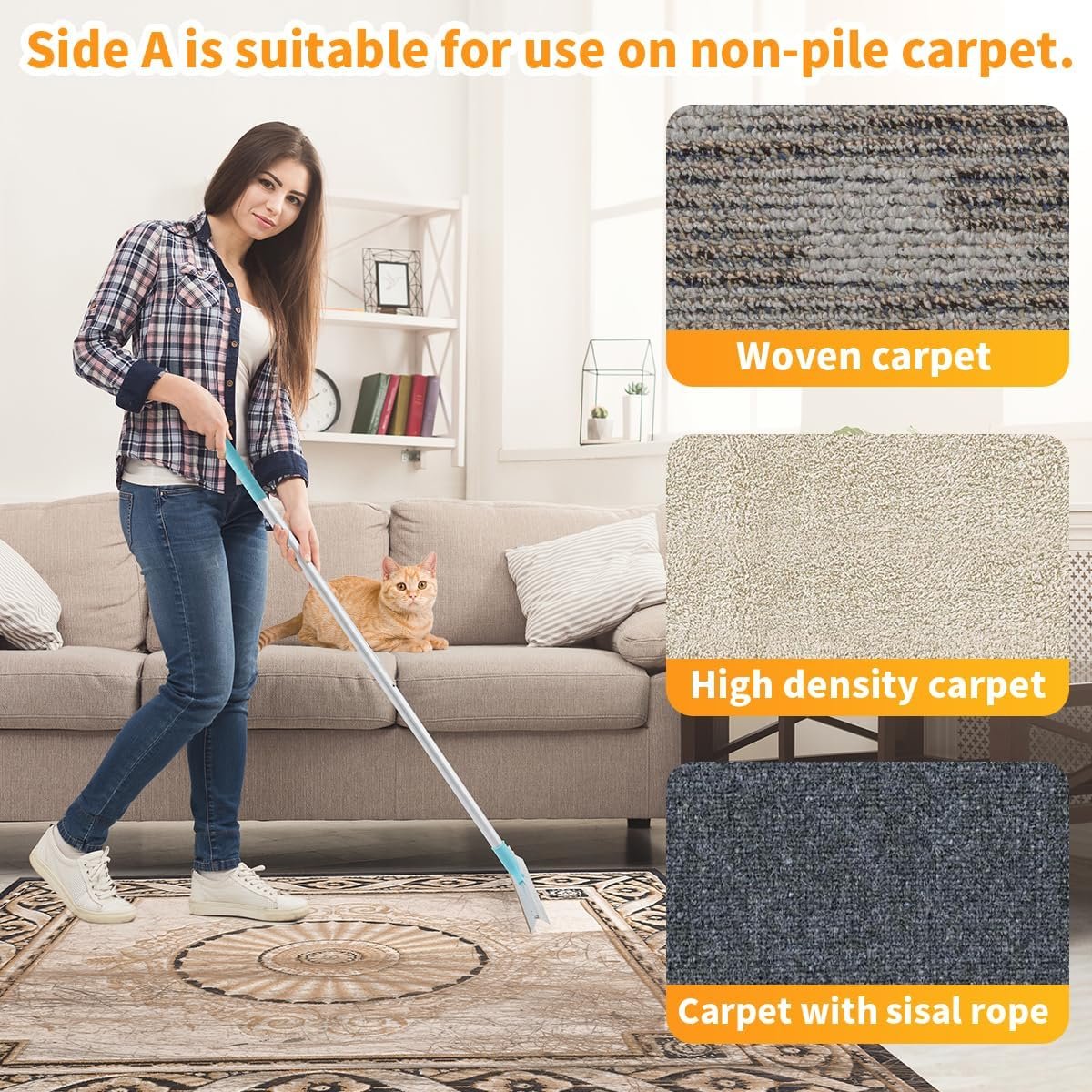 EFFORTLESS HAIR REMOVAL: The B side is designed with metal strips, allowing for easy removal of pet hair and carpet fuzz from smooth-surfaced carpets, restoring them to a like-new condition.Suitable for most Flat Carpet, felt carpets, woven carpets, and high-density low-fluff carpets.