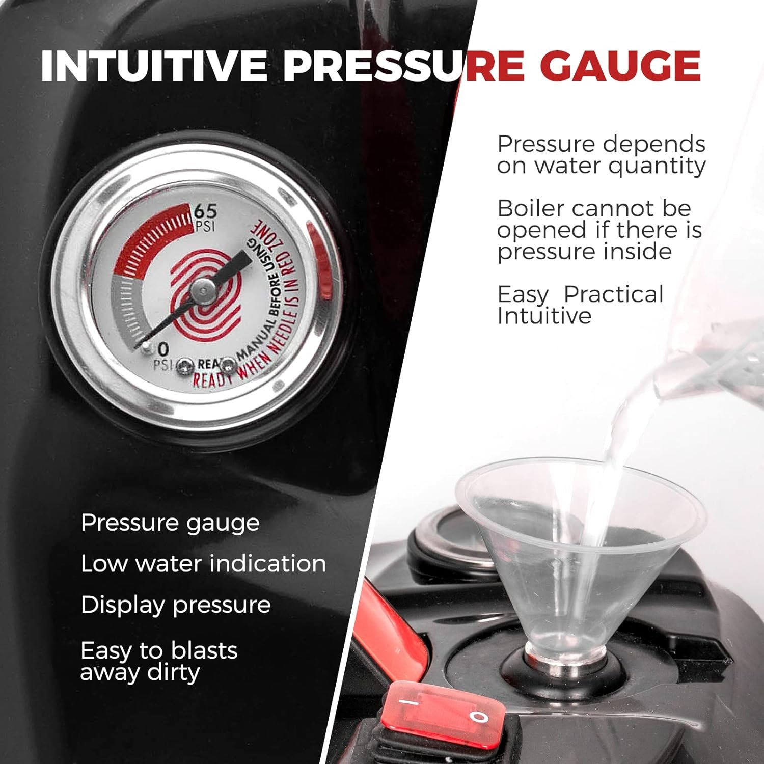 INTUITIVE CONTROL: Our Steam Cleaner is very easy to operate and use. The pressure gauge will show the pressure value in the boiler, the LED light will show the working status. After filling the 1.8L tank, after 8 minutes of fast heating, it will bring you 35 minutes of cleaning time.