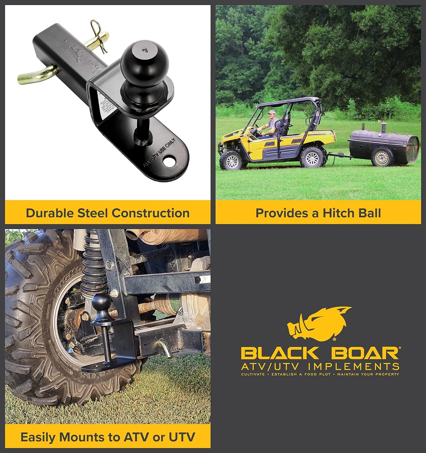 Easily Mounts To Your Atv Or Utv Hitch Receiver To Provide A Hitch Ball, Winch Strap Loop And ⅝” Pin Hole For Yard Work Equipment, Utility Trailers And Other Towable Accessories