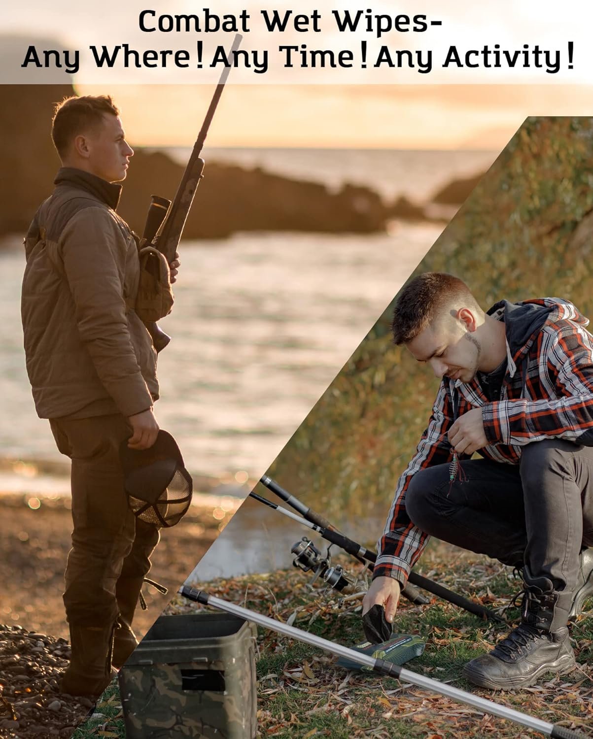 COMBAT WIPES COMMANDO BLACK WIPES are one of the only BLACK wet wipes out there! These wipes were designed by real elite military soldiers; combat-tested guys who know just how dirty and sweaty the outdoors can get, even in your unique camouflage situations.
