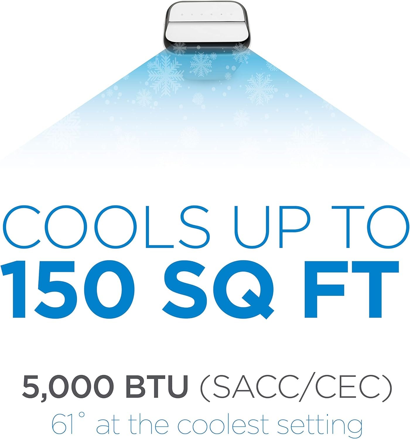 QUIET & POWERFUL – Our 5,000 BTU SACC/CEC (8,000 BTU ASHRAE) compact air conditioner (17.32 x 13.2 x 27.2 inches and 51.1 lbs) will keep you cool and comfortable all summer. An adjustable fan speed, with up and down auto air swing, cools the air to 64 degrees Fahrenheit at the coolest setting. Sleep mode makes it extra quiet while you rest, 52dB on highest setting.